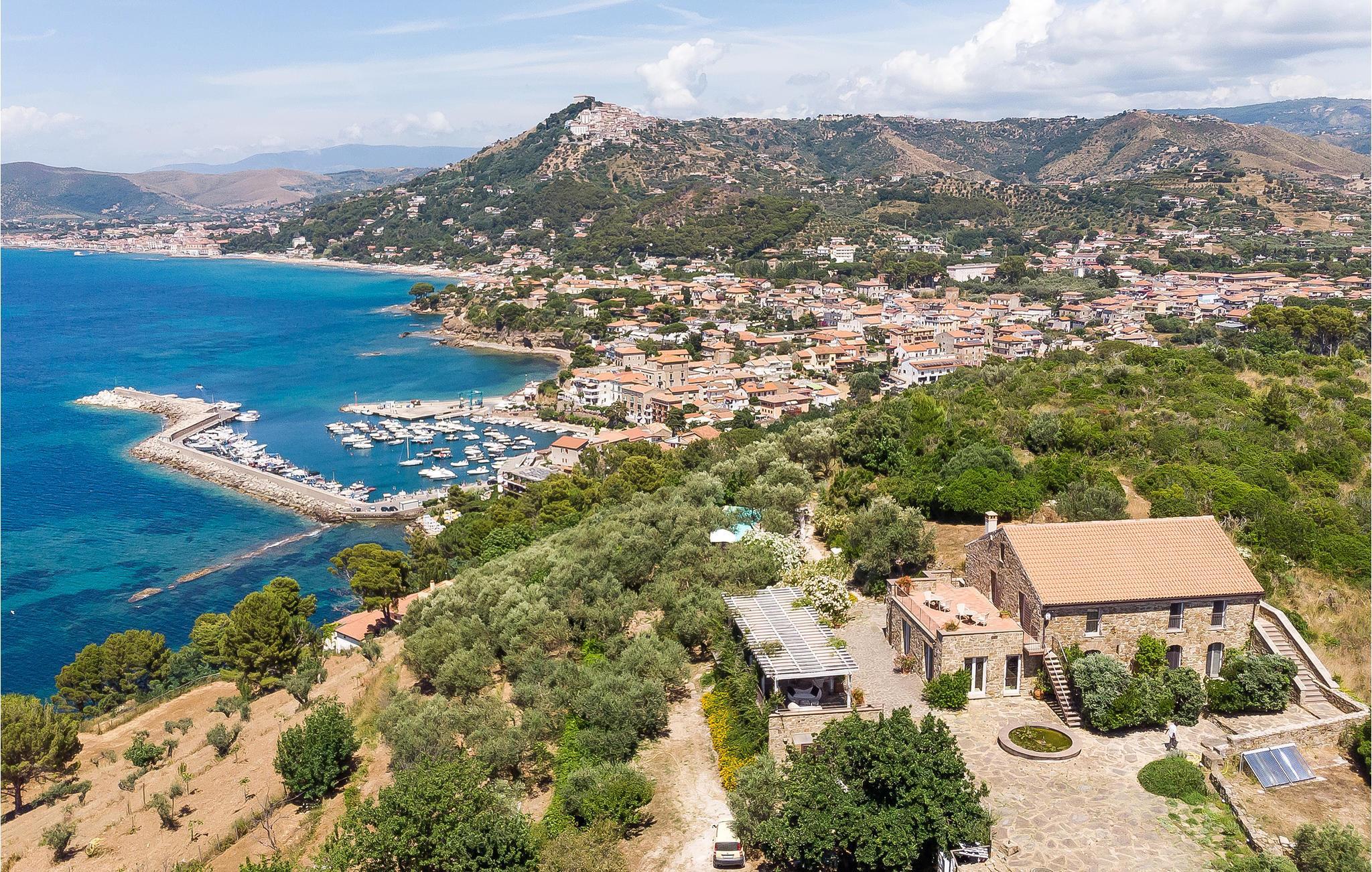 In erhöhter Lage mit spektakulärem Blick auf das Cilento-Meer liegt dieses schöne Ferienhaus aus dem typischen Cilento-Stein. Das Anwesen befindet sich auf einem Hügel mit Blick auf das Dorf San Marco di Castellabate (ca. 800 m entfernt, auch zu Fuß erreichbar). Das Haus wurde aus einem alten Bauernhaus erstellt, das sorgfältig restauriert wurde, wobei die charakteristischen Materialien, wie die Holzbalken und Keramikböden behalten wurden. Das Haus besteht aus einer Wohnküche und sieben Schlafzimmern, die alle nur von außen zugänglich sind und nicht intern miteinander verbunden sind. Alle werden zusammen als IKC566 vermietet, ideal für Gruppen von Freunden. In einem Nebengebäude unterhalb der Villa und vollständig vom Zentralgebäude getrennt, gibt es eine kleine Wohnung, in der sich der Schlüsselhalter aufhält. Er kümmert sich um die tägliche Pflege der Villa, des Pools und des Gartens. Im Hauptgebäude gibt es sieben Schlafzimmer, von denen eines mit Galerie mit zwei Betten und das andere ein zusätzliches Schlafsofa für zwei Personen. Die weiten offenen Bereiche mit herrlichem Panorama sind mit Tischen und Stühlen für Mahlzeiten im Freien ausgestattet. Die Lage ist perfekt, um einige der interessantesten Orte des Cilento wie Castellabate und seinen charakteristischen historischen Stadtkern (4 km), Acciaroli (12 km) und Paestum (30 km) zu erreichen. Für Ihre Ausflüge können Sie einen Besuch der 100 km entfernten Amalfiküste, 110 km von Pompeji und der 150 km entfernten Stadt Neapel nicht versäumen.