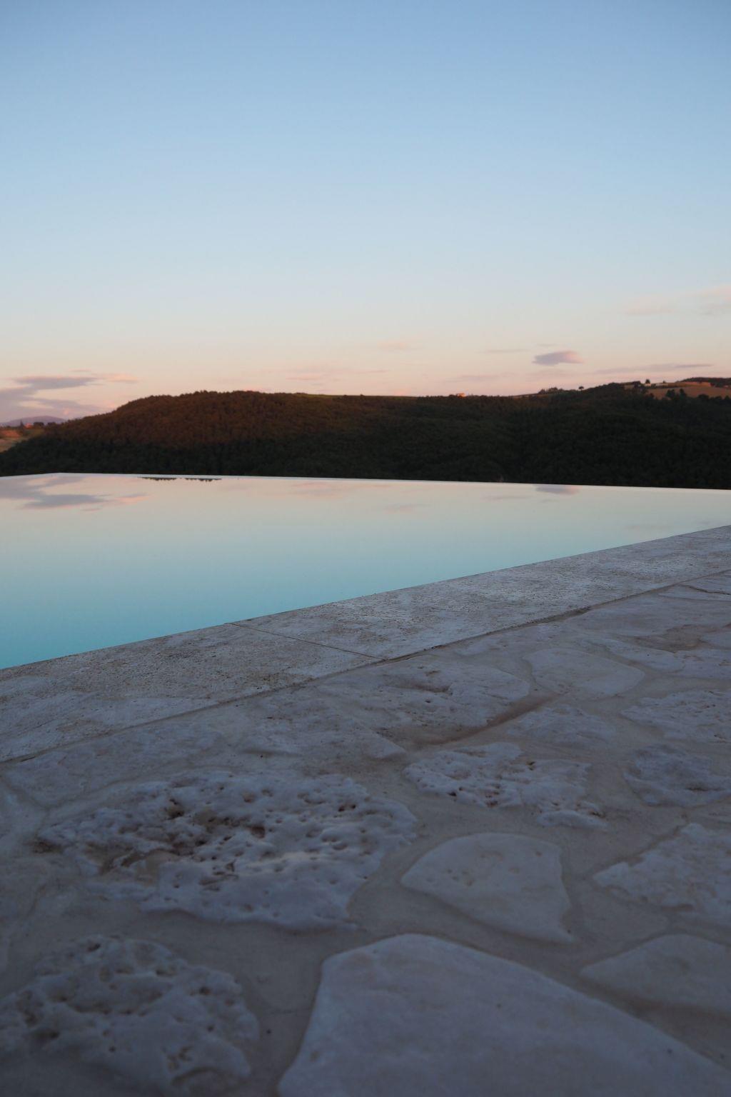 The external charm of the villa is no less impressive. Guests can relax by the beautiful infinity pool, ideal for enjoying the warm Umbrian summer days. L'esterno, attentamente progettato per rispecchiare la bellezza naturale dell'Umbria, offers the perfect space to relax and enjoy the tranquillity that only the Umbrian countryside can offer.