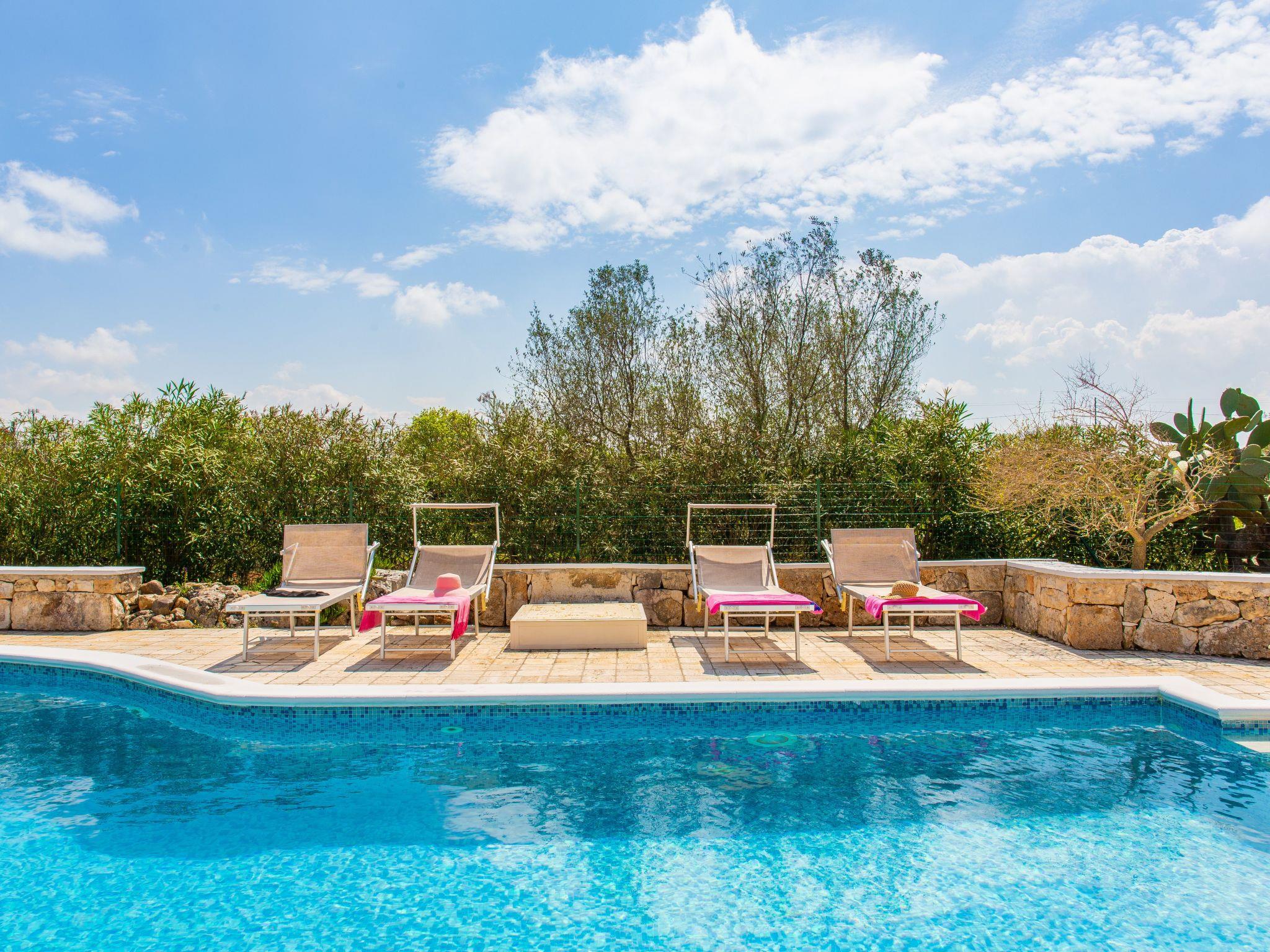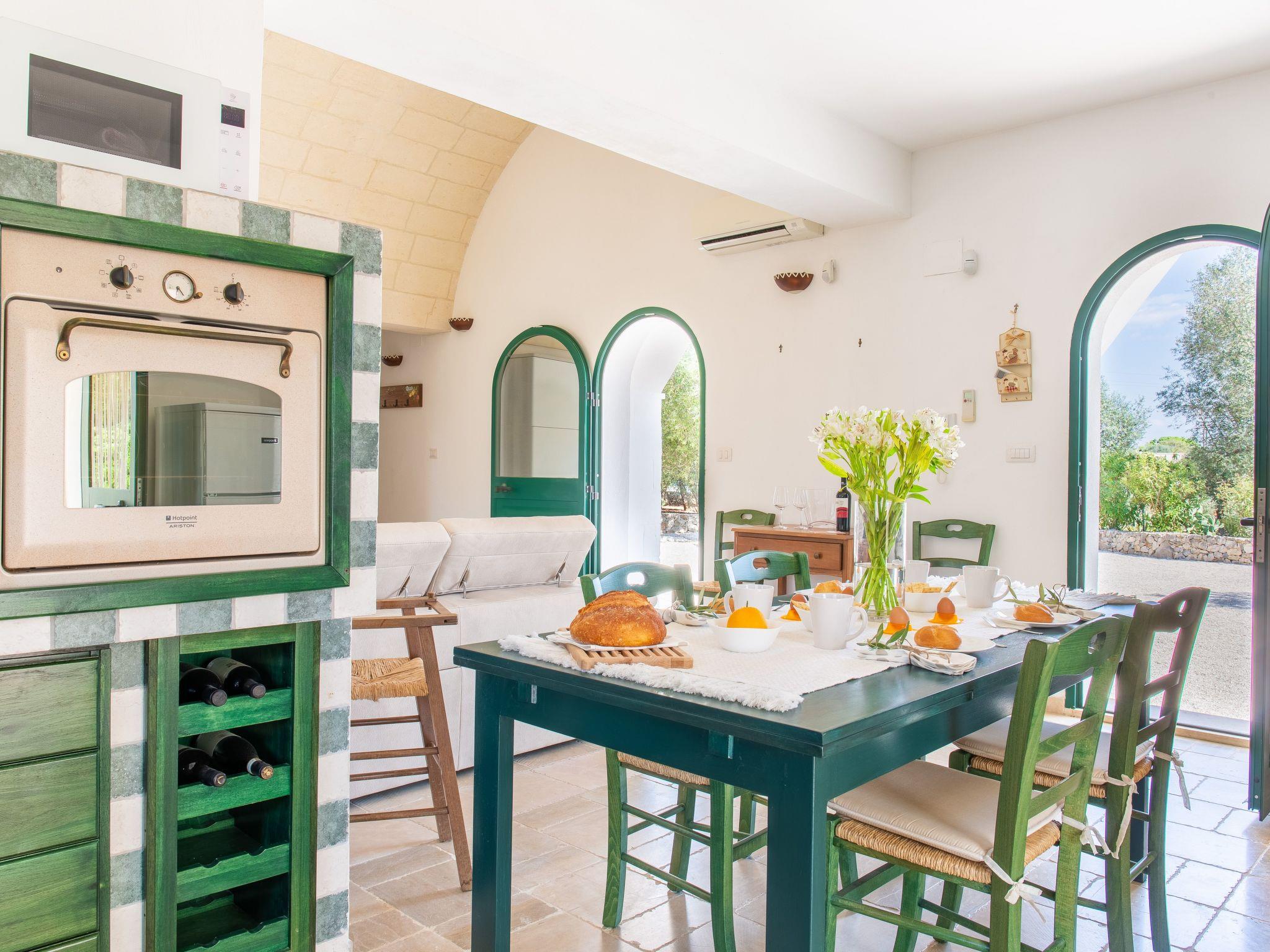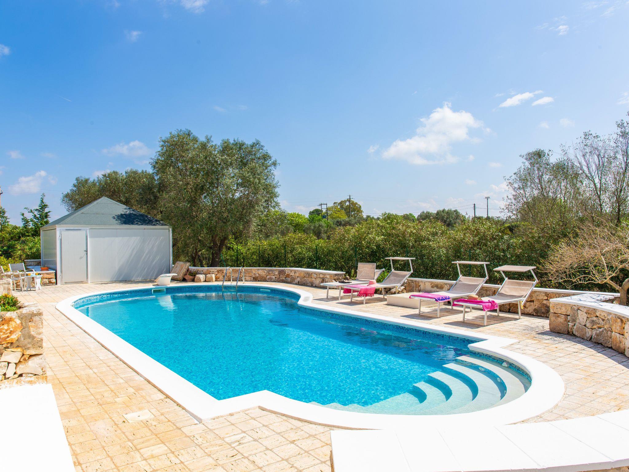 the main building offers a fully equipped kitchen, a living room, a double bedroom and a bathroom with shower. With external access to the main structure and attached to it you enter another structure with three bedrooms and two bathrooms with shower, in particular here there is a double bedroom with en-suite bathroom, a double bedroom, a bedroom with two individual beds. With external access from the main structure and attached to it there is a trullo with two single beds (double use) and a bathroom with shower. For outdoor dining there are three verandas. For the children there are the springs, the swing and the slide. There are five air conditioners and the heating system. The pool is 10 x 4 m large.