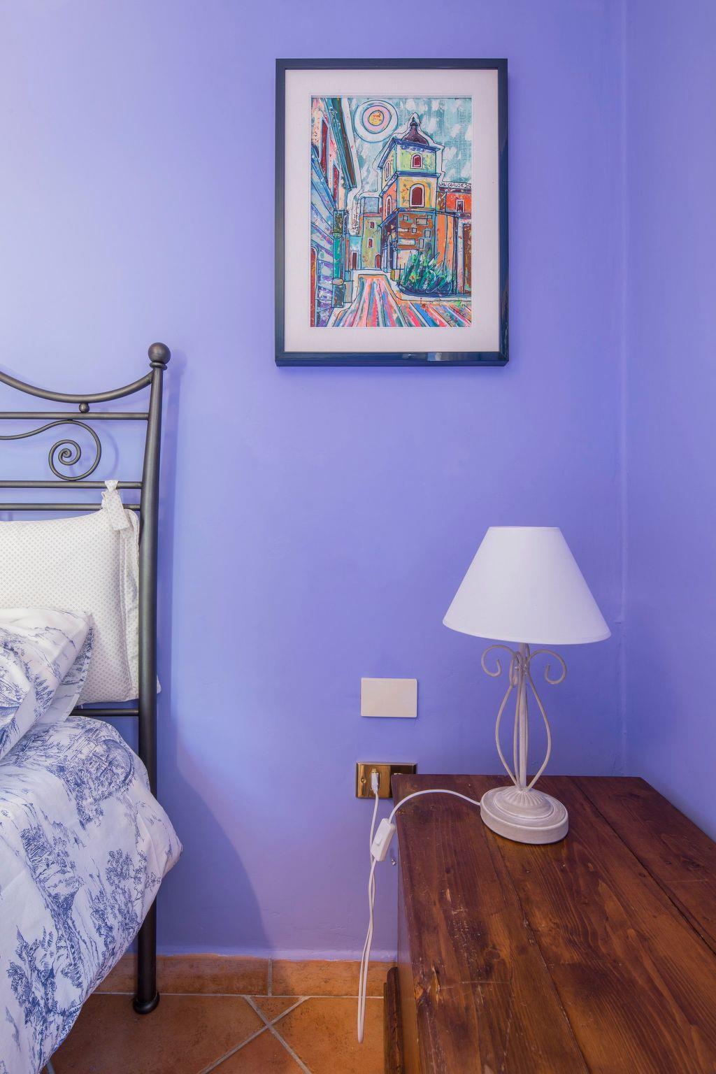The house has an independent entrance and is built on two floors on the ancient fortified walls. On the first floor is the circular living room with a double sofa bed, fireplace, bookcase, TV, desk, and a large kitchen complete with appliances and utensils. On the first floor there is a bathroom with washbasin, bathtub/shower and bidet.