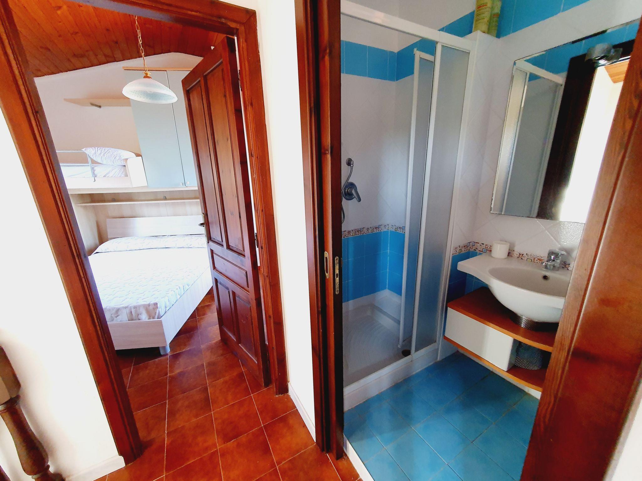 The interior of the villa is designed for maximum comfort. On the first floor, you will find a spacious and cosy living area where you can relax, equipped with all amenities including a practical gas cooker and a romantic fireplace, ideal for preparing delicious meals and enjoying warm and cosy evenings. The presence of a washing machine for exclusive use also makes the villa functional for longer stays. Thanks to the extensive use of windows, the interior spaces are bathed in natural light that accentuates the feeling of spaciousness and freedom.