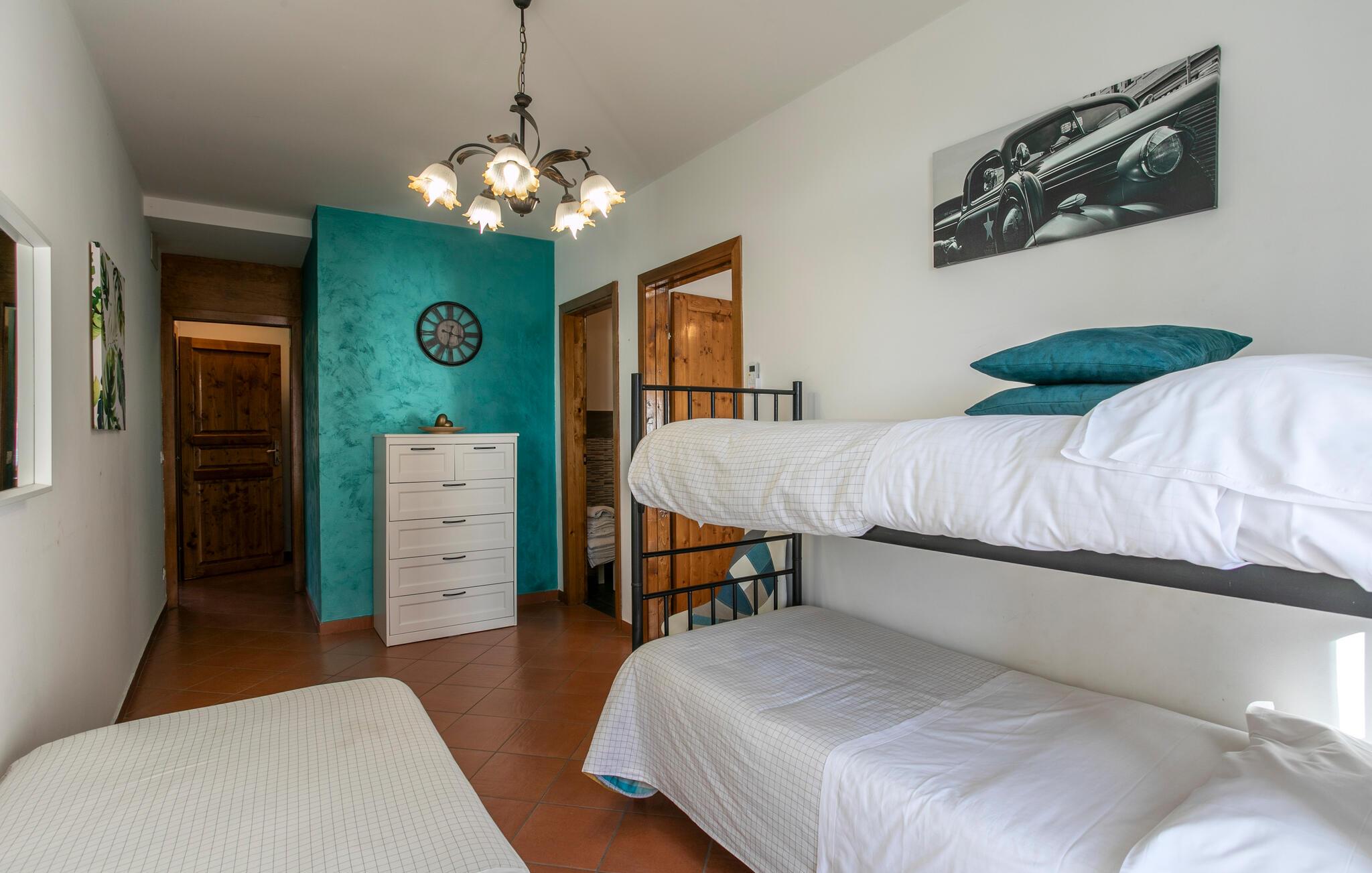 Die Unterkunft besticht durch ihre elegante Einrichtung und das warme, mediterrane Ambiente. Die geräumigen Innenräume sind mit viel Liebe zum Detail gestaltet und bieten Ihnen modernen Komfort in einer charmanten Umgebung. Bereiten Sie in der Küche leckere Mahlzeiten zu und lesen auf dem Sofa Zeitung.