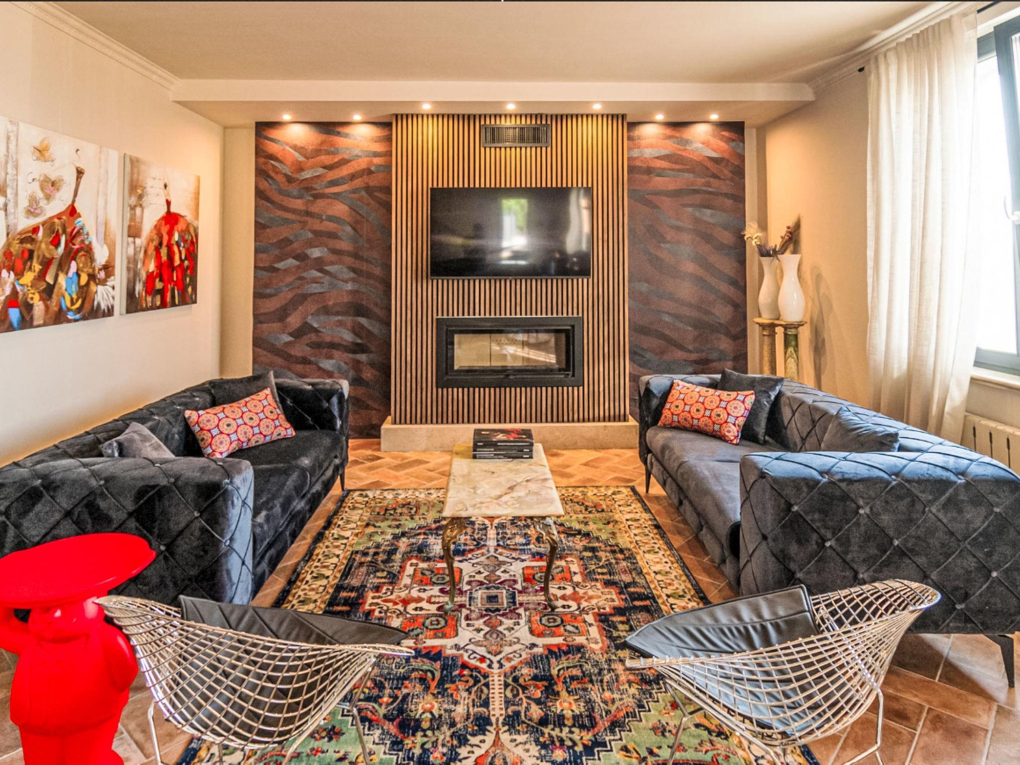 12-room villa 600 m2 on 3 levels. Modern and stylish furnishings: billiard room with open-hearth fireplace, TV and flat screen. Exit to the garden. 1 children's room with 4 beds and shower/bidet/WC. 1 double bedroom with shower/bidet/WC. 1 room with 1 x 2 bunk beds, 1 double bed and shower/bidet/WC. 1 children's room with shower/bidet/WC. Kitchen (4 hot plates, oven, dishwasher, microwave, electric coffee machine) with dining table. Upper floor: living room with open-hearth fireplace. Exit to the garden, to the veranda, to the swimming pool. 1 double bedroom with shower/bidet/WC. 1 large double bedroom. 1 room with 2 beds. 1 double bedroom with shower/bidet/WC. Kitchen (4 hot plates, oven, dishwasher, microwave, electric coffee machine) with dining nook. Shower/bidet/WC. Gas heating, air-conditioning. 2nd upper floor: 1 double bedroom. Exit to the terrace. Facilities: washing machine, mosquito net, hair dryer. Internet (WiFi). IT055031B901034211