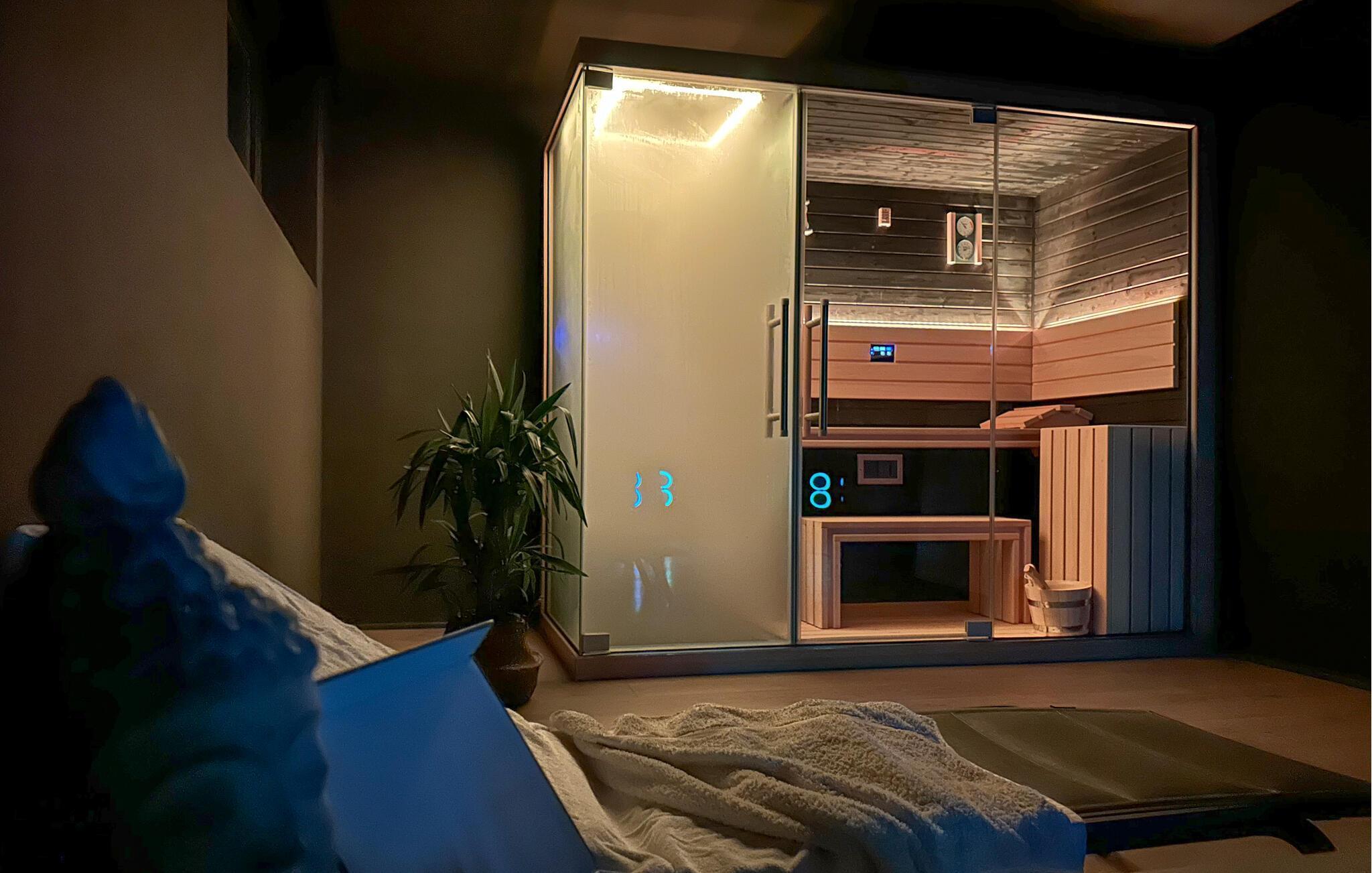 Genießen Sie einen luxuriösen Urlaub in diesem Ferienhaus mit Pool, Sauna und Whirlpool.