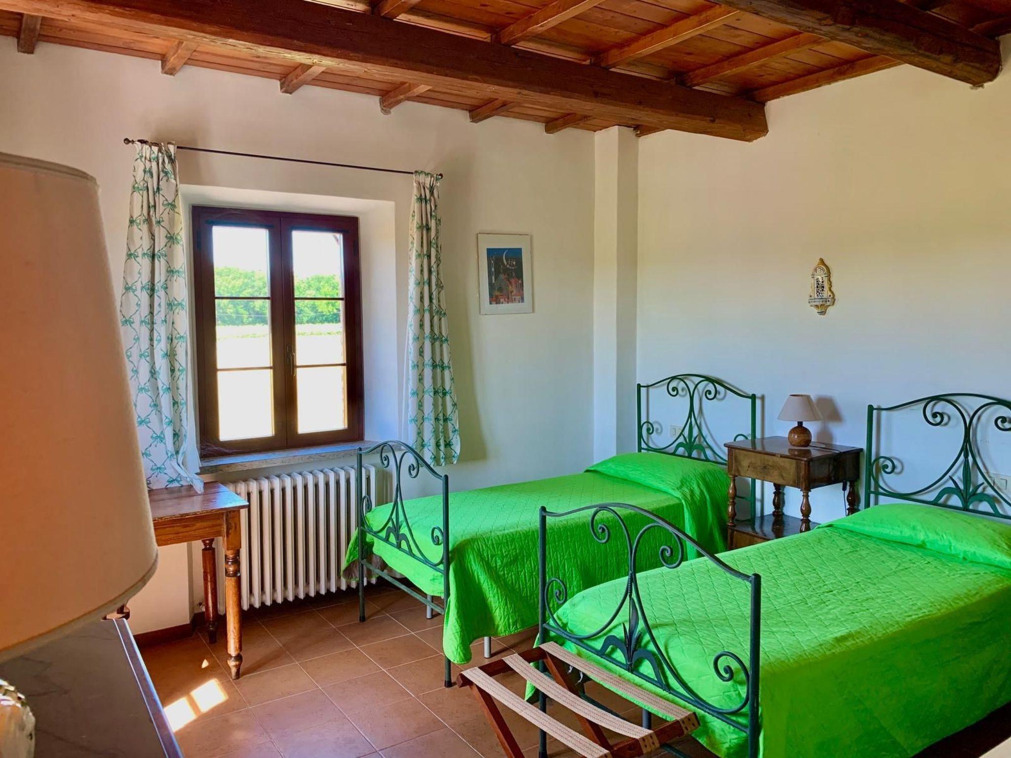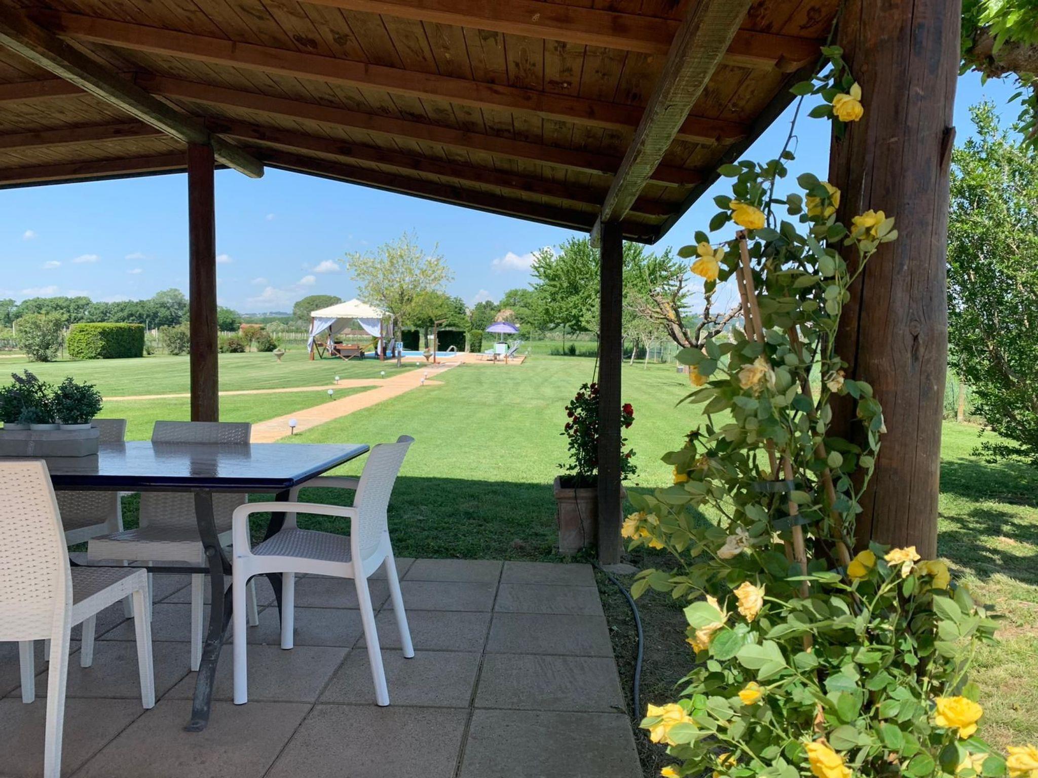 On the ground floor: beautiful bright and elegant living room; 1 fully equipped kitchen with dining area; 1 double bedroom; 1 bathroom with shower. On the first floor: 1 large, bright living room with double sofa bed; 1 bathroom with bath and shower unit; 1 bedroom with 2 beds and cot; 1 double bedroom. swimming pool, panoramic view, private equipped garden with a furnished pergola and a barbecue at the service of each flat. The pergola is furnished with table and chairs and lit. In the heart of DOC wine-growing estate, close to Perugia, Assisi and cities of art. Wheelchair-accessible, pets allowed. Large organic vegetable garden available free of charge, welcome basket with breakfast and complimentary DOC wine.