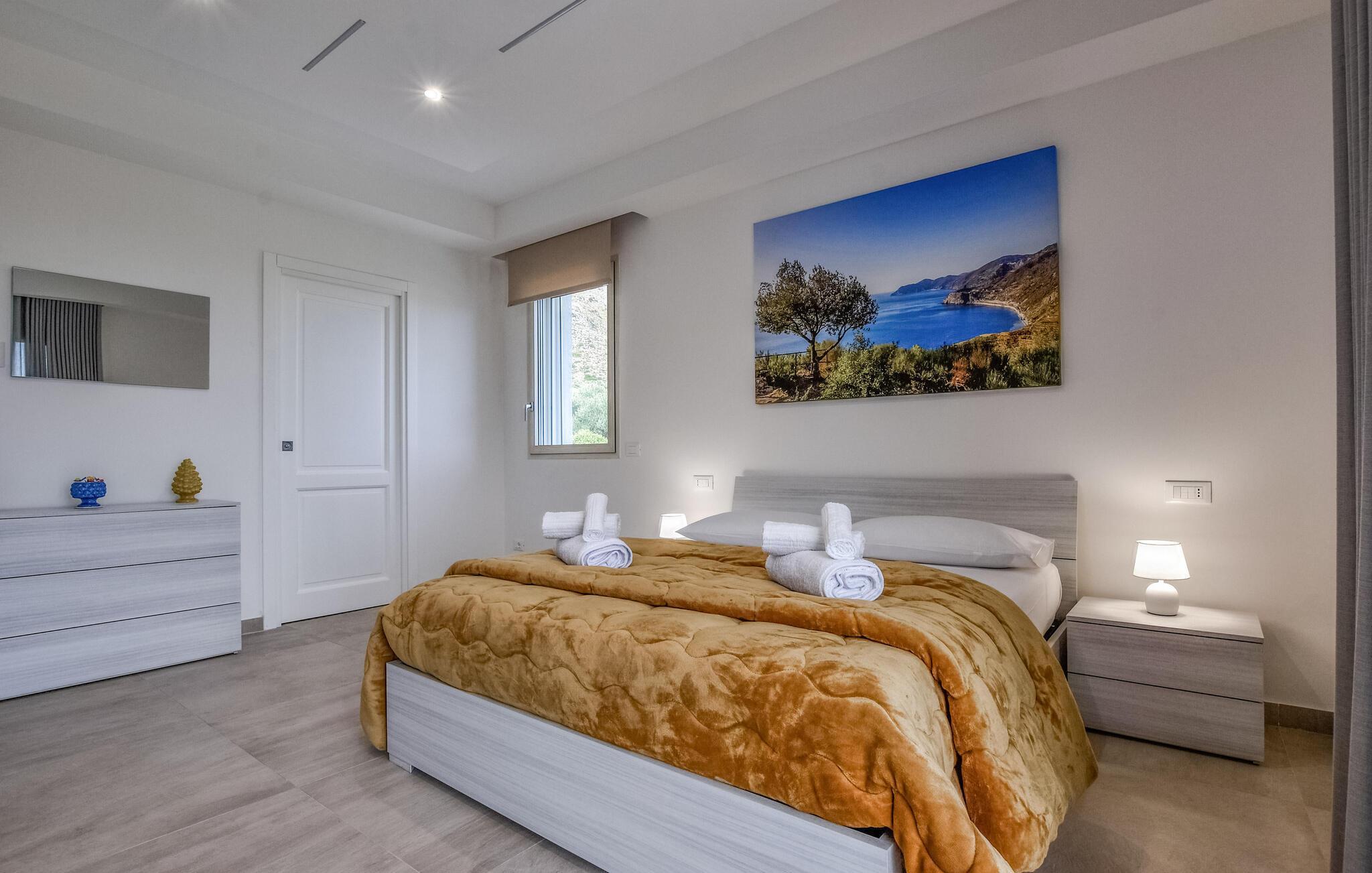 Genießen Sie vom Balkon den atemberaubenden Blick auf das Meer bei Trabia. Tauchen Sie in den blickgeschützten Pool ein und servieren Sie sich Ihr Frühstück auf der Terrasse. Tanken Sie neue Energie auf bequemen Sonnenliegen und zaubern Sie in der Sommerküche köstliche Beilagen für stimmungsvolle Grillabende, während sich die jungen Gäste an der Rutsche und im Spielhaus erfreuen.