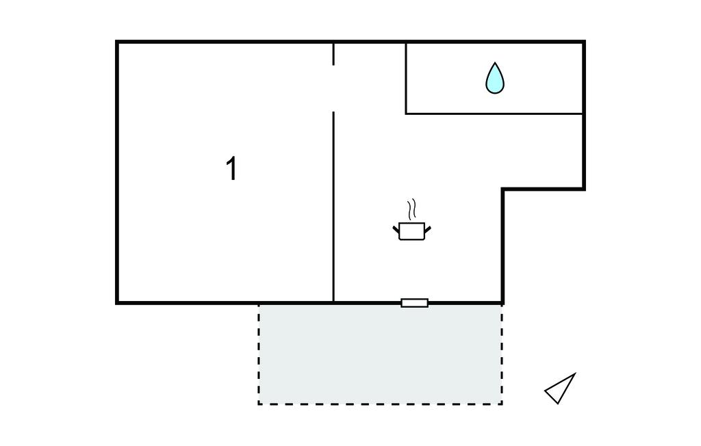 Badezimmer 5m2 (nr. 1) - WC. Warmes und kaltes Wasser. Dusche