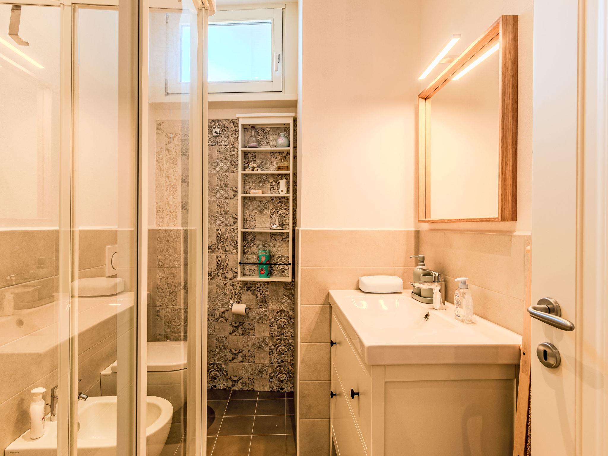 2-room apartment 40 m2, on the upper ground floor. Fully renovated in 2025, comfortable and modern furnishings: living/sleeping room with 1 double sofabed (140 cm), dining table and TV (flat screen), air conditioning. 1 double bedroom with air conditioning. Exit to the balcony. Open kitchen (4 induction hot plates, toaster, kettle, microwave, freezer, electric coffee machine). Shower/bidet/WC. Air-conditioning, forced-air heating. Natural stone floors. Balcony. Balcony furniture. Beautiful view of the lake, the mountains and the resort. Facilities: washing machine, children's high chair, baby cot for up to 2 year olds, hair dryer. Internet (WiFi, free). Please note: non-smokers only. Private entrance, smoke alarm, fire extinguisher. IT013252C2R68AVG6Q