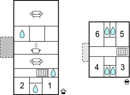 Badezimmer (nr. 5) - WC. Warmes und kaltes Wasser. Dusche
