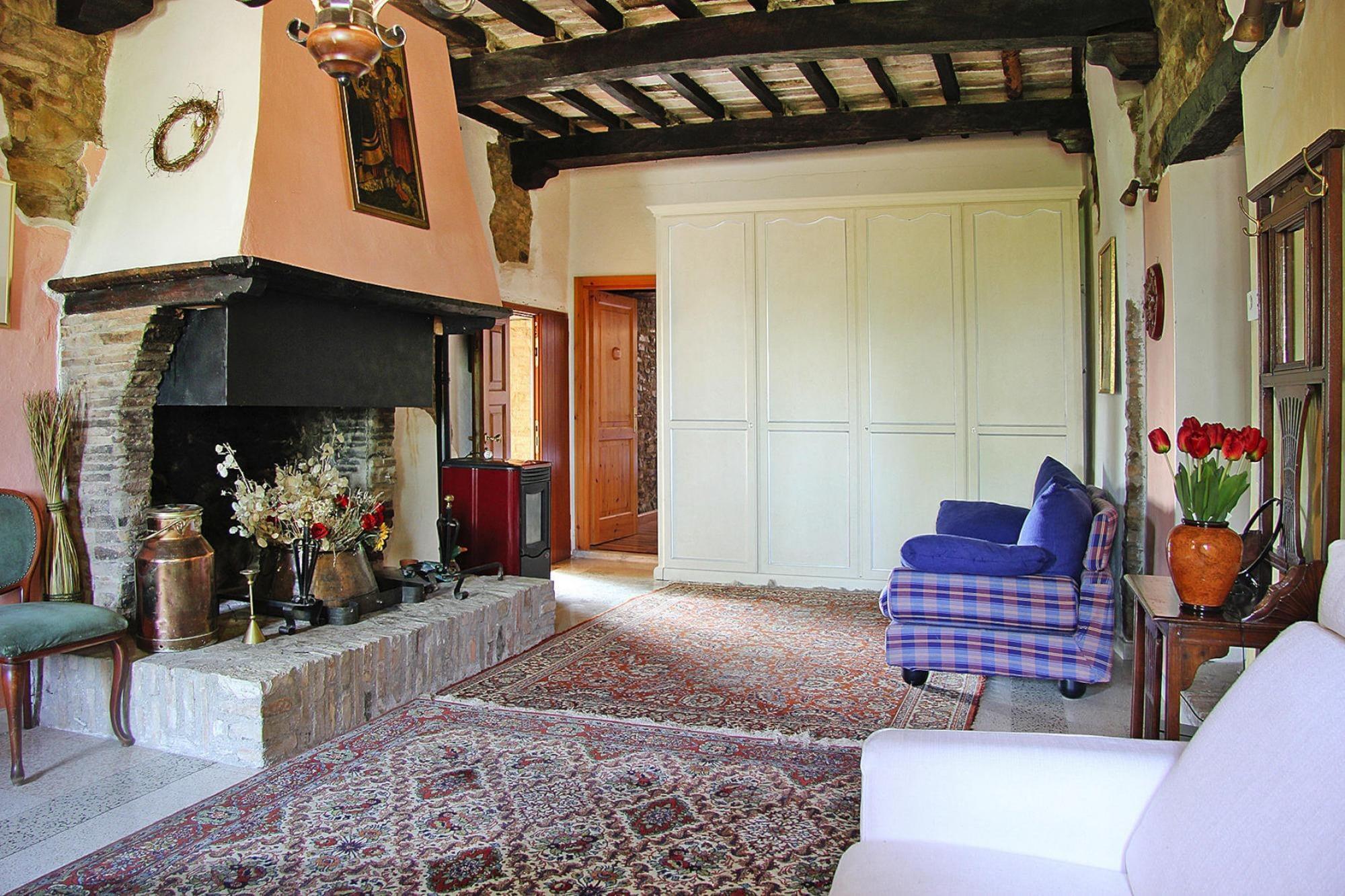 Holiday without stress and traffic in a Borgo for exclusive use, a medieval small village hamlet. Lovingly renovated while retaining the typical architectural elements, it has become a wonderful retreat with a swimming pool and beautiful all-round views of the hilly landscape. New is the games room on the ground floor, which includes a pool table and table football. Enjoy the view as far as Tuscany and, on a clear day, even as far as the sea. You can stretch out and relax in the comfortably furnished courtyard with pizza oven and in the spacious garden. You won't be neighbors except maybe deer, squirrels and falcons. Sheep or porcupines are disturbed and can spend your vacation time in close contact with nature. An antique stone staircase leads to the upper floor in a dining room with a large fireplace and a long table for up to 20 people. Here you can all enjoy Italian delicacies and a good red wine. Details: WLAN Activities nearby: In the area you can walk and cycle, visit cities such as Urbania (12 km) and impressive cultural monuments. By car you are quickly in the river valley of the Metauro, romantic and worth seeing! Excursions to Urbino or the sea to Fano and Pesaro should also be on your holiday list Not suitable for people with reduced mobility