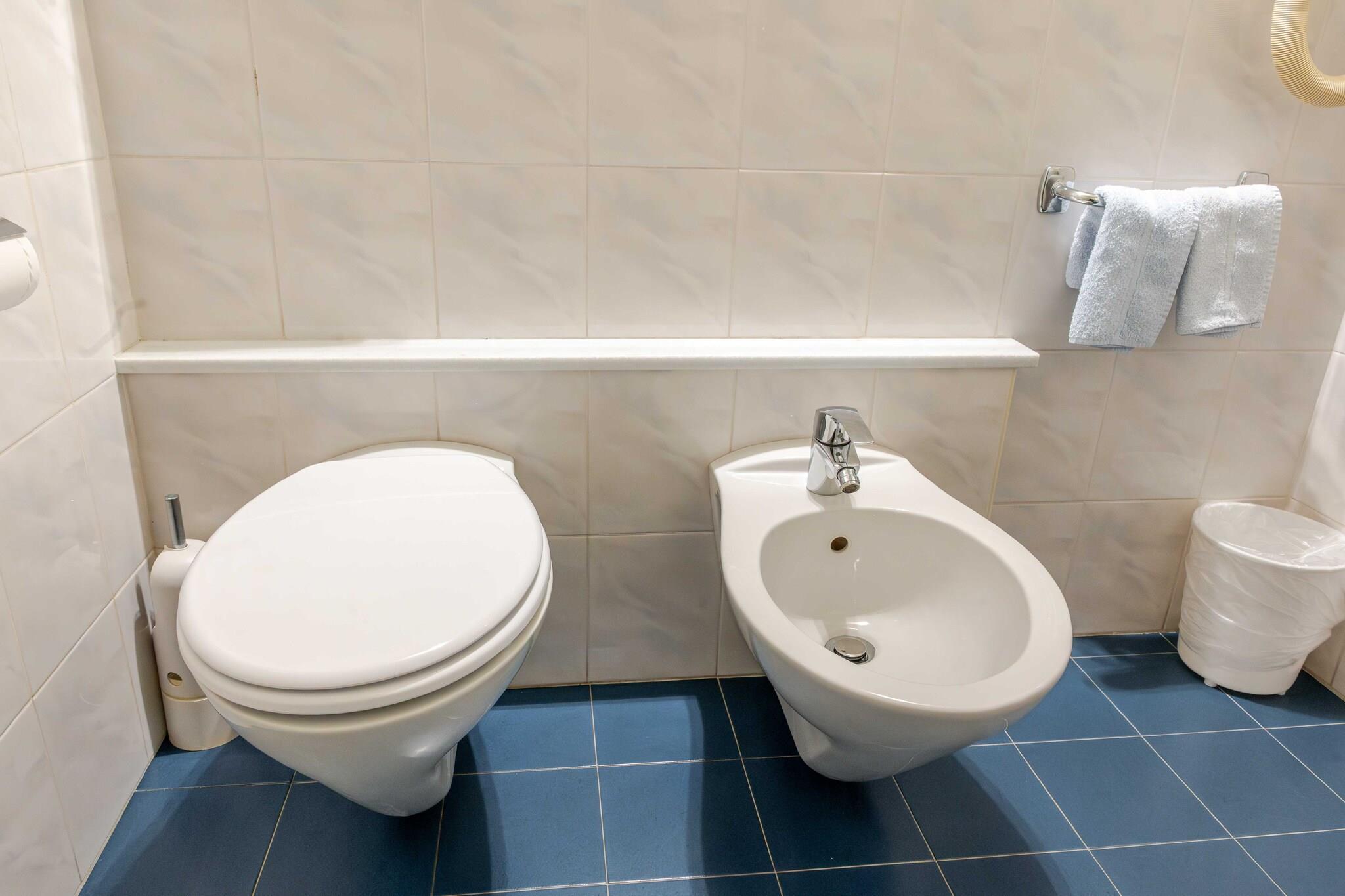 Ground floor: (Living/bed room(Bed Linen, double bed, TV, air conditioning), bathroom(shower, toilet, shampoo)) Desk, Elevator, Hot Water, Internet Access DSL, Safe, Wardrobe, First Aid, Beach, Play area, Breakfast room, electric kettle, coffee machine, microwave, fridge, balcony or terrace, heating, Essentials, Dedicated workspace, Cleaning Disinfection, Downtown, Enhanced cleaning practices, Near Ocean, Room-darkening shades, Town