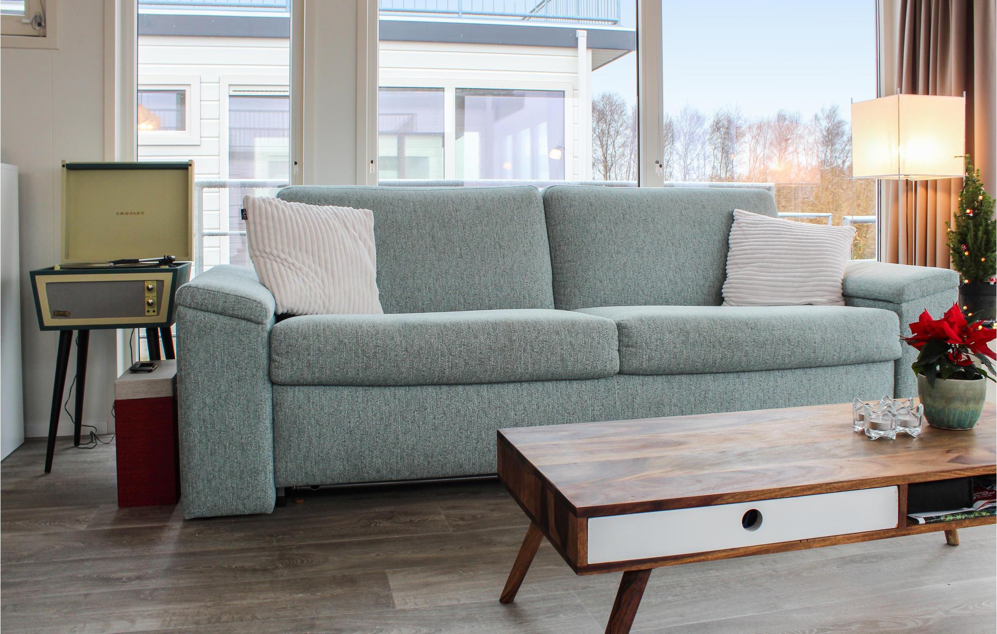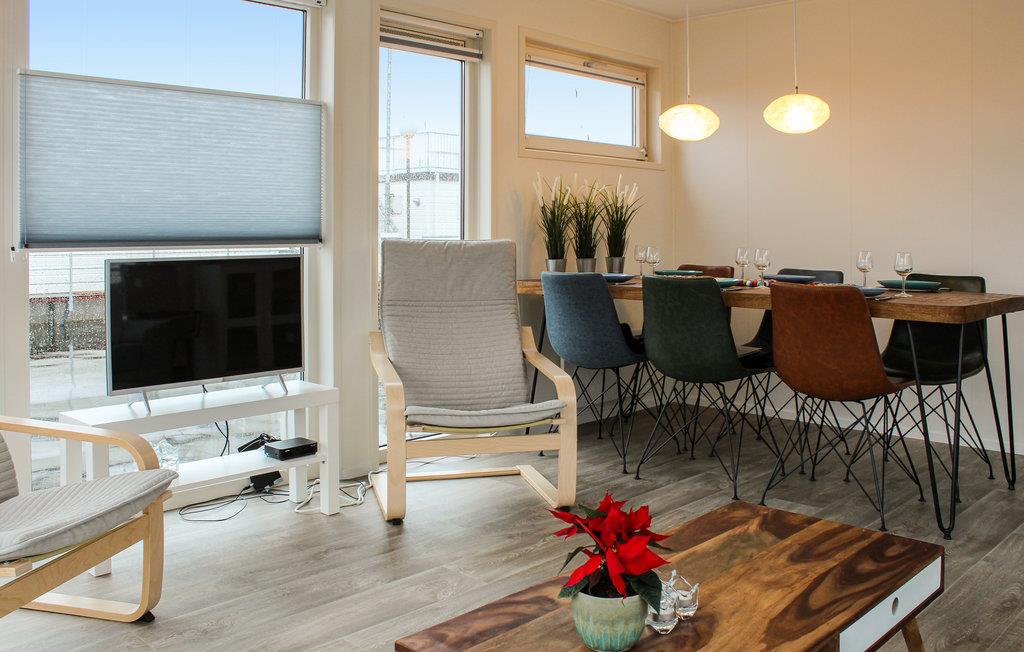 Das moderne Wohnzimmer verfügt über große Fenster, wodurch viel Licht einfällt. Sie können im Wohnzimmer auch von allen Seiten über das Wasser schauen. Eine offene Küche, ausgestattet mit allen Annehmlichkeiten wie Kaffeemaschine und 4-Flammen-Herd, bietet alle Voraussetzungen für ein gutes Essen mit der Familie. Es gibt zwei Schlafzimmer für zwei Personen. Das Badezimmer hat eine Toilette, Dusche und Waschbecken. Im Ferienhaus gibt es 2 SUP-Boards. Der Fernseher empfängt nur regionale Kanäle und das Wi-Fi ist begrenzt.