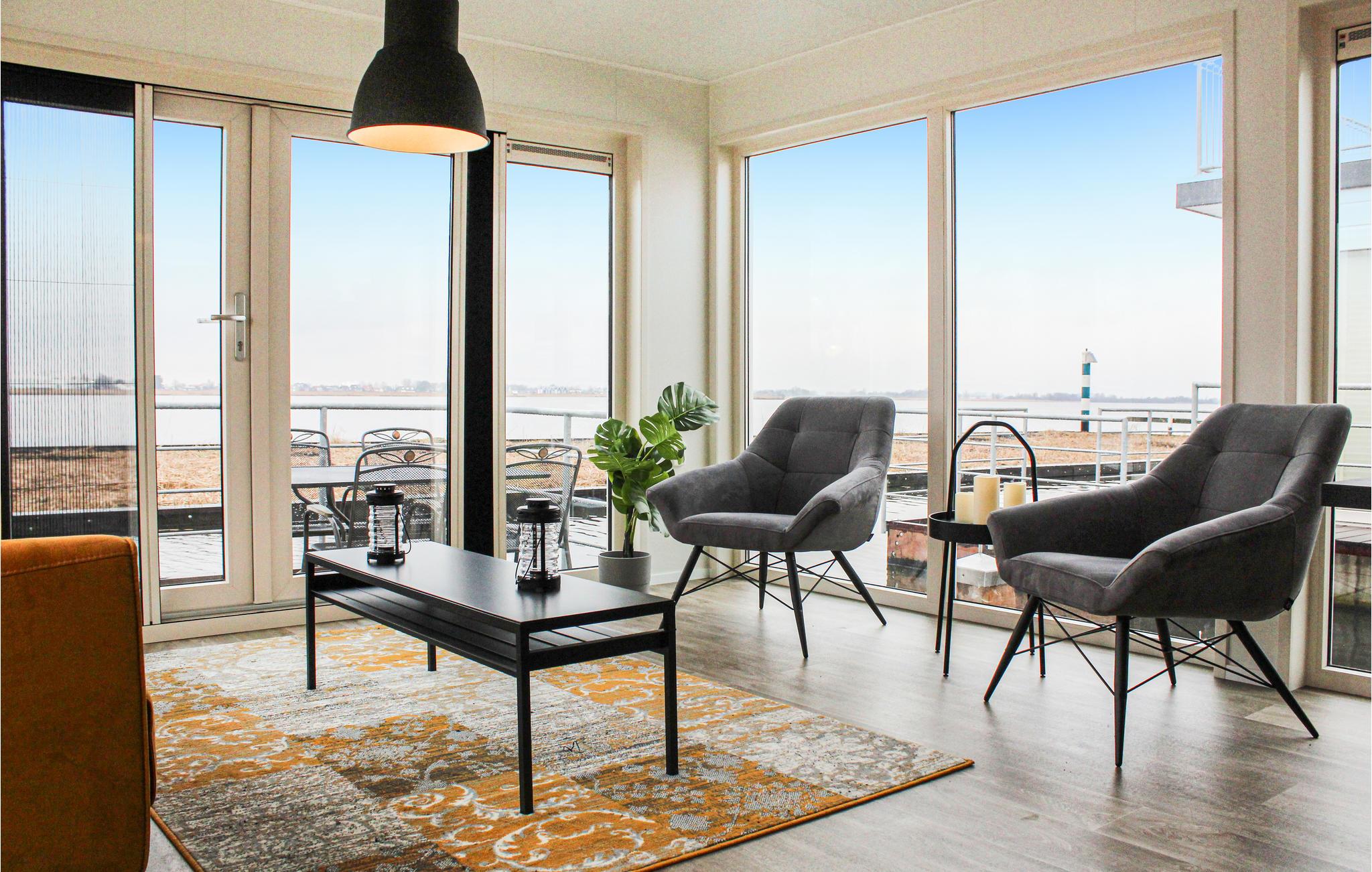 Dieses Haus hat vom Wohnzimmer und von der Terrasse aus einen Blick über die Westeinderplassen, nicht über den Jachthafen.