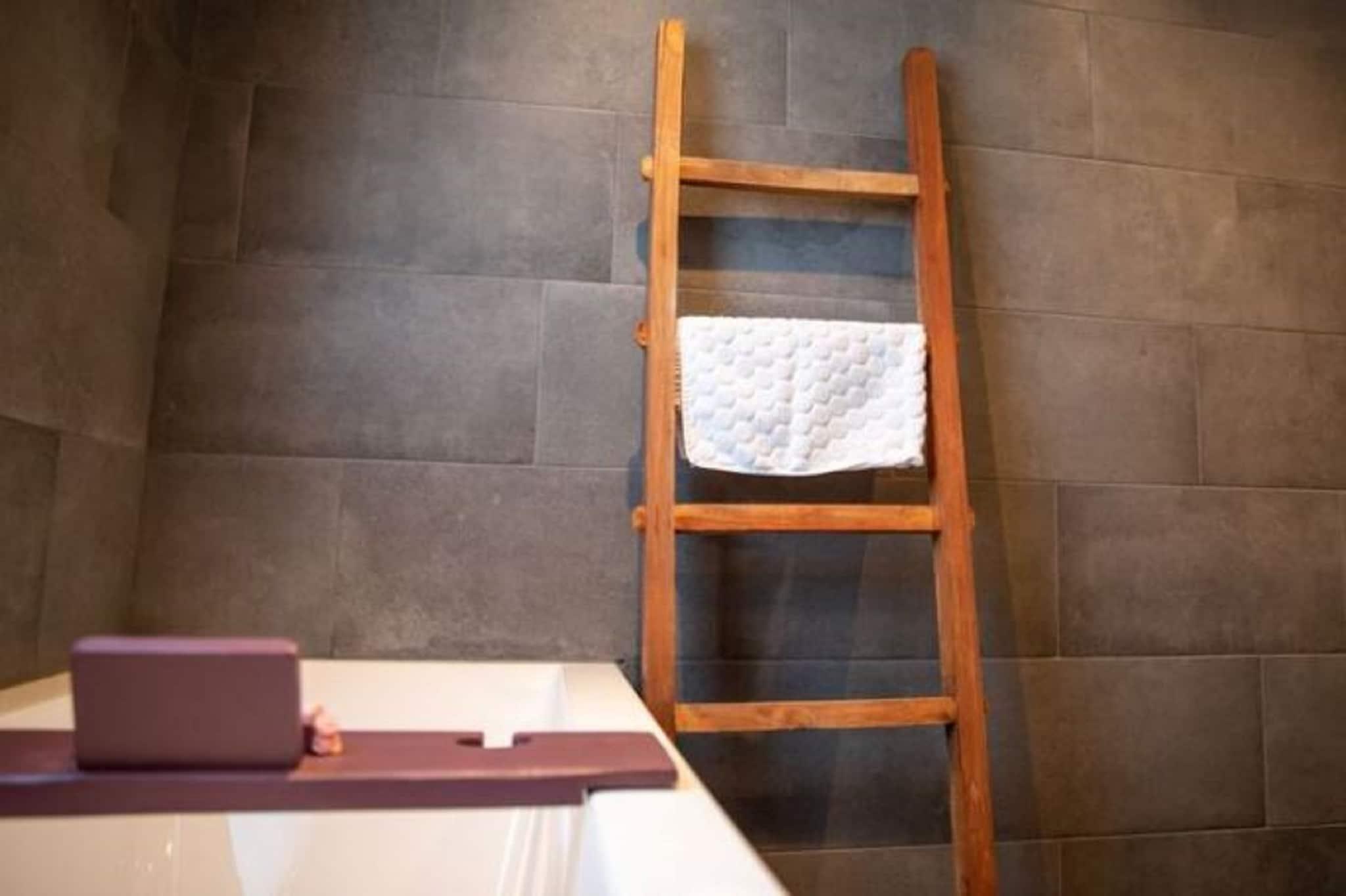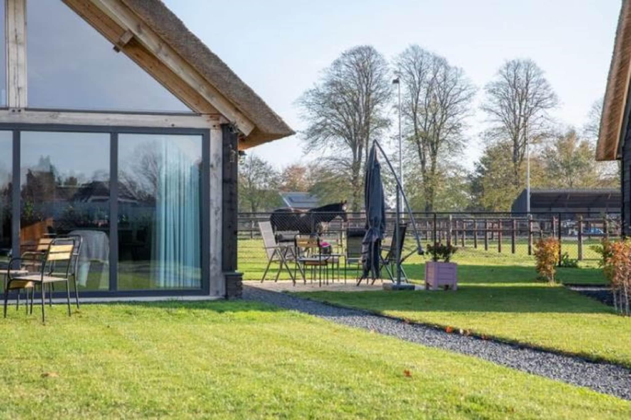 On the 1st floor: (hallway, open kitchen(electric kettle, cooker, coffee machine, combination microwave, dishwasher), Living/diningroom(dining table, seating area), bedroom(double bed(boxspring, twin duvet, 180 x 200 cm)), bathroom(bath tub, shower, washbasin, washbasin, toilet)) On the 2nd floor: (bedroom(single bed(duvet, boxspring), single bed(duvet, boxspring)), bathroom(washbasin, toilet)) stables, TV, streamingservice, microwave, bathtub or shower, washing machine(shared with other guests), terrace, garden furniture, sun loungers, parking, deckchairs, parasol, ironing board, party games