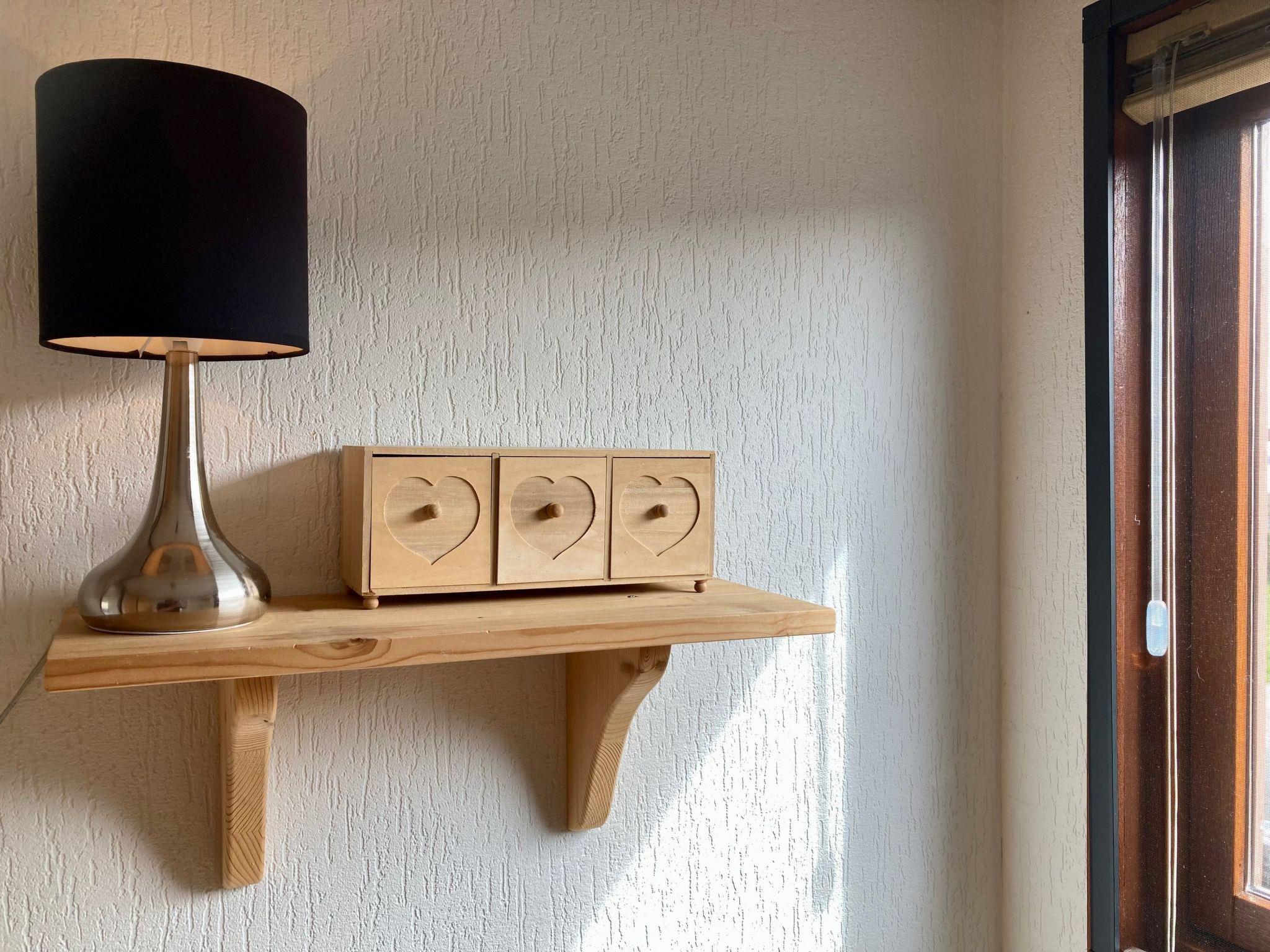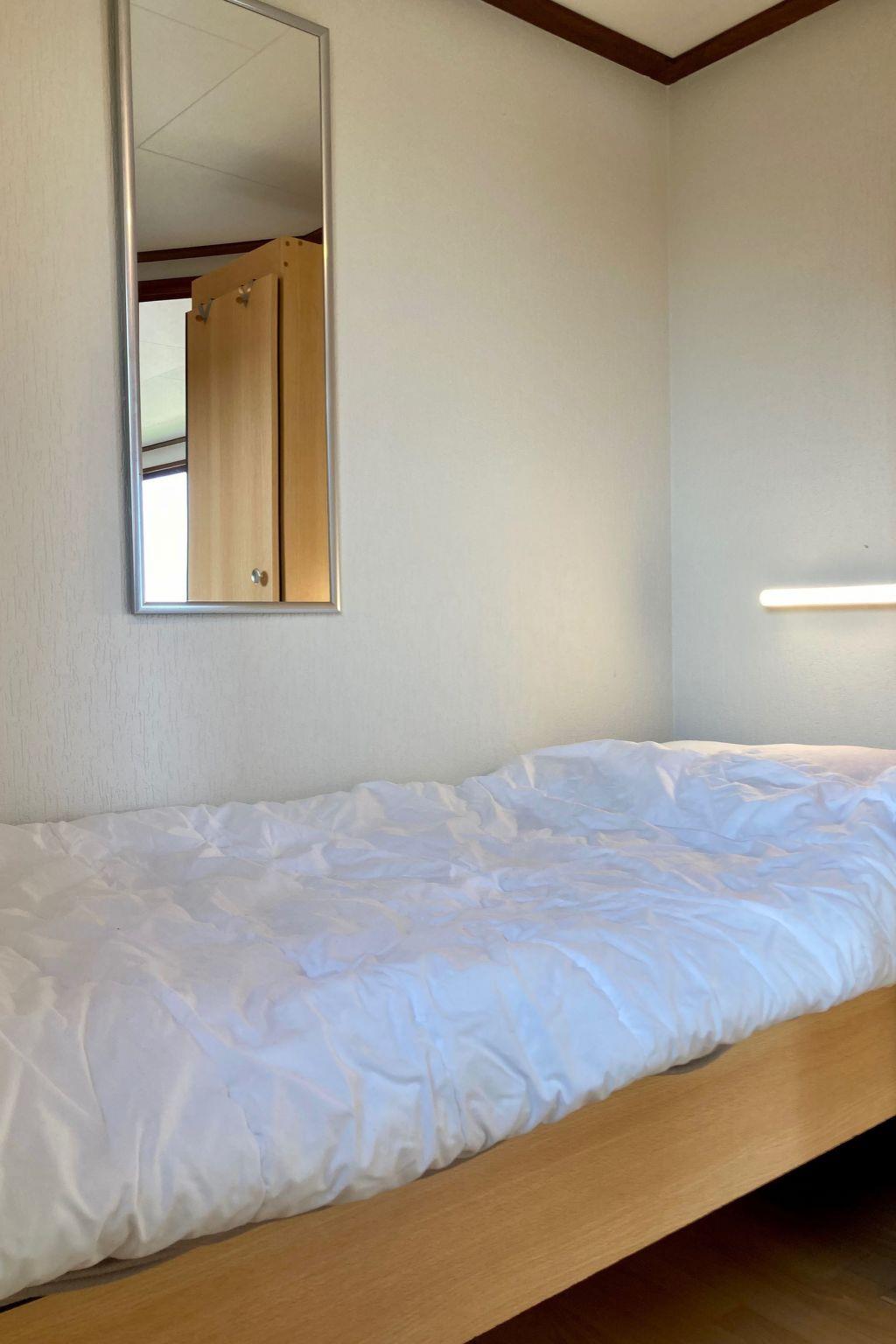 Holiday home ‘Sonnenschein’ is suitable for up to 4 persons. There are two bedrooms, one with a double bed and the other with a 90x190 bunk bed and there’s a bathroom with shower, toilet, sink and a washing machine.