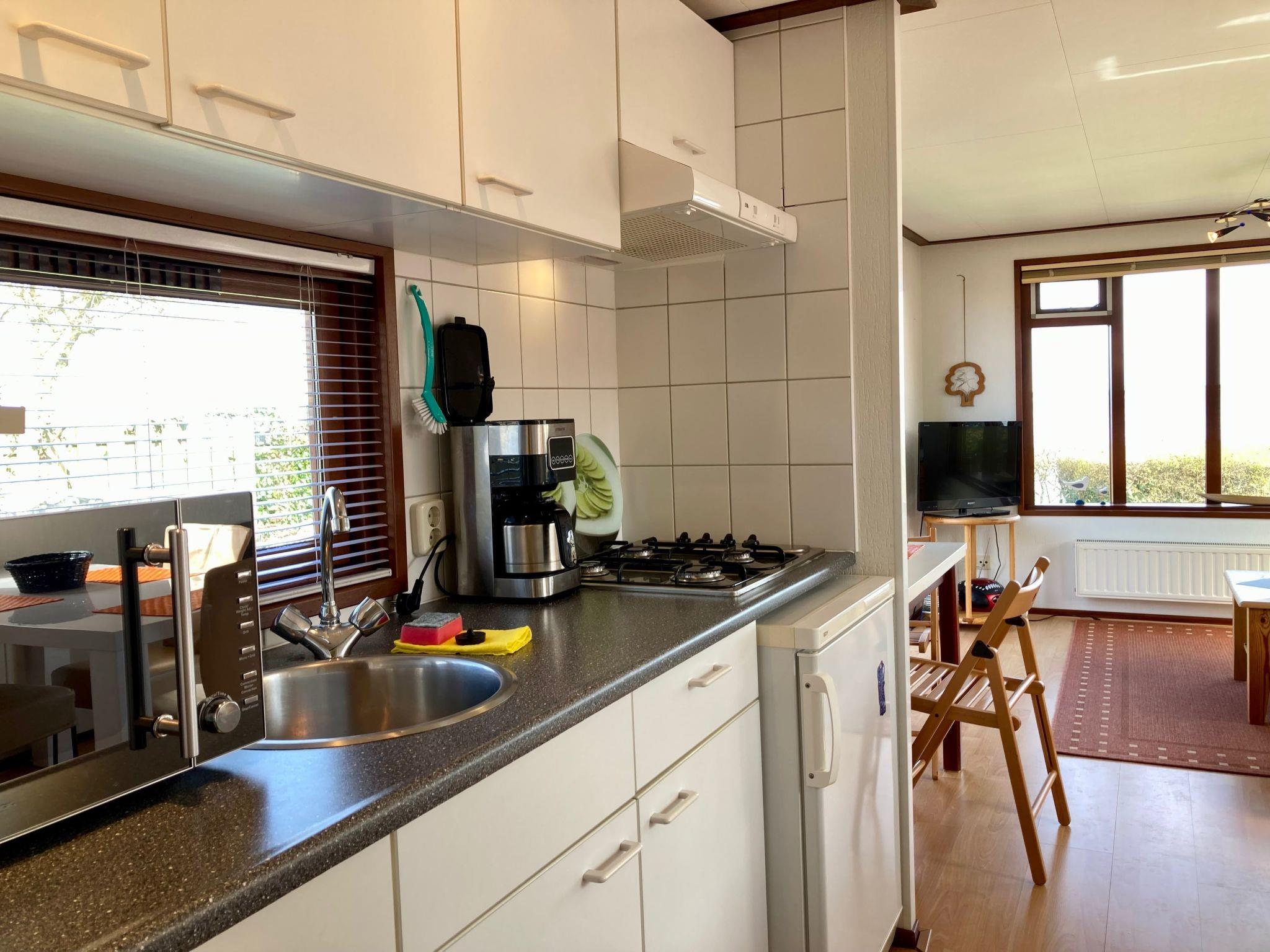 Sonnenschein is focussed entirely at the National Park Lauwersmeer. From the living room and the garden, you look directly at the water and in the distance you can see the flood gates at the sea harbor of Lauwersoog. The fenced garden of the chalet has a lot of places to sit in the sun at any time of the day and the gardenhouse has an infrared Sauna. The open kitchen is fully equipped, including a coffee machine and a dishwasher.