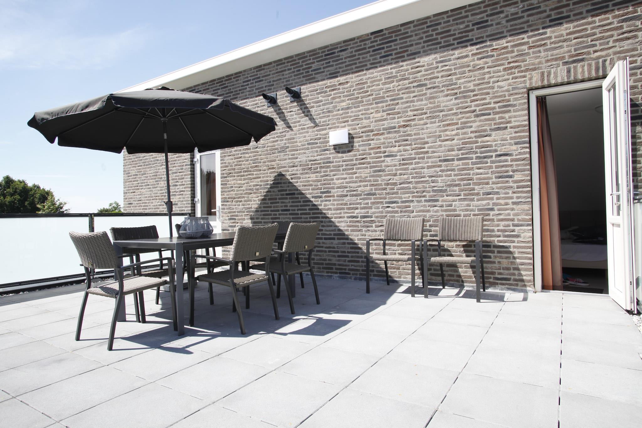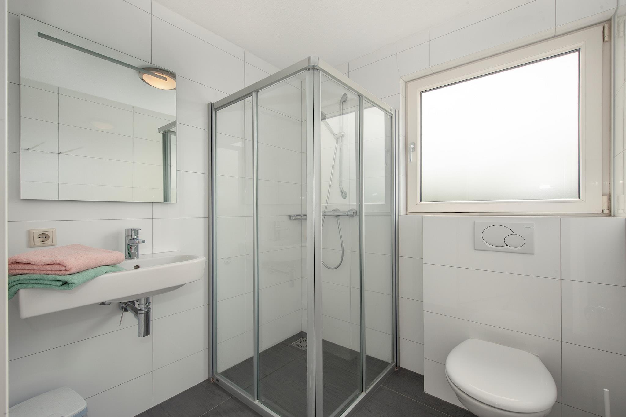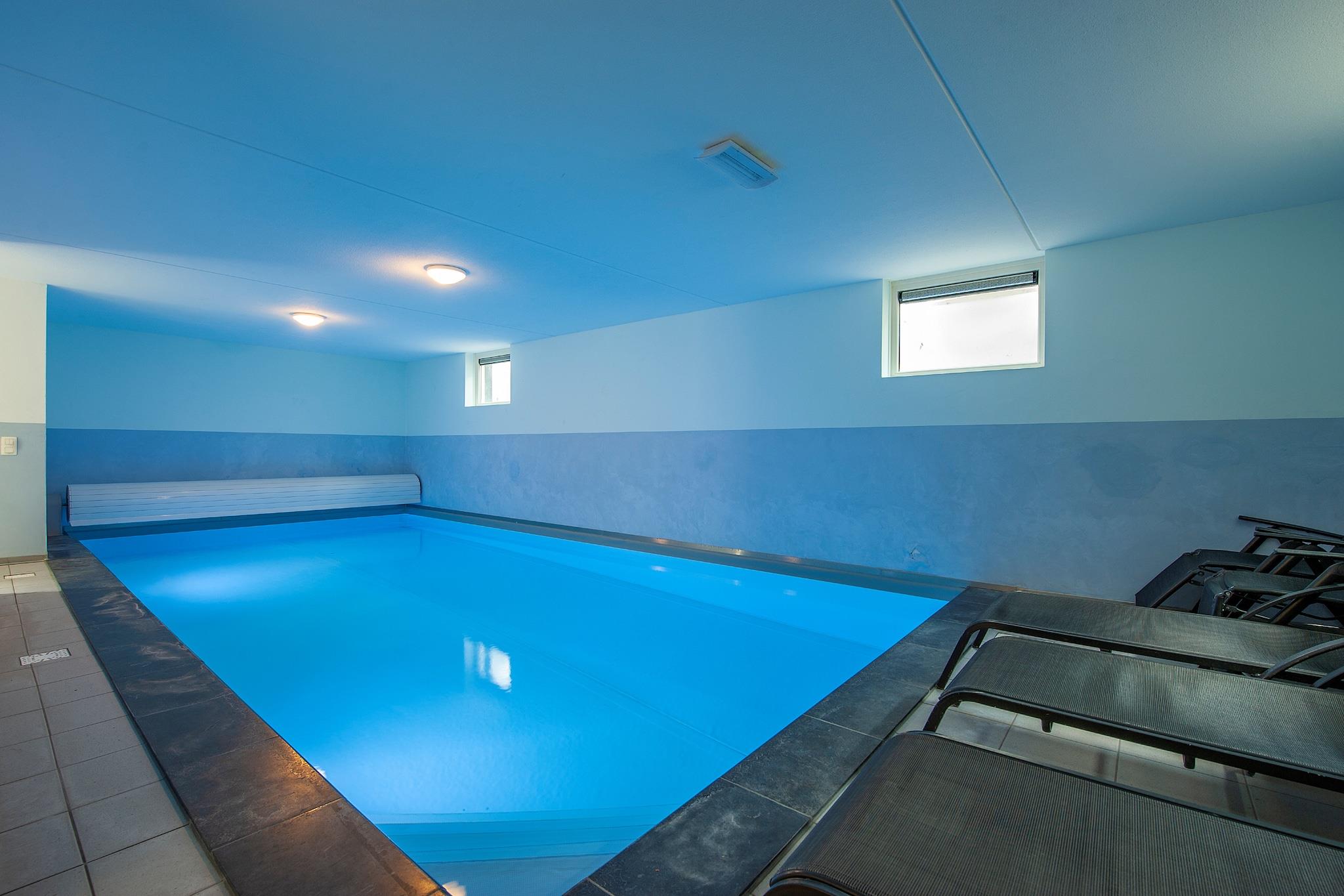 Ground floor: (hallway(toilet), Living room(TV(flatscreen), DVD player, heating(floor heating)), open kitchen(electric kettle, coffee machine(filter), coffee machine(pads), combination microwave, dishwasher, fridge-freezer), Bedroom with bathroom(double bed or 2 single beds, TV, shower, washbasin, toilet), Bedroom with bathroom(double bed or 2 single beds, TV, shower, washbasin, toilet)) On the 1st floor: (Bedroom with bathroom(double bed or 2 single beds, TV, shower, washbasin, toilet), Bedroom with bathroom(double bed or 2 single beds, TV, shower, washbasin, toilet), Landing, roof terrace) Basement: (hallway, Kitchenette(fridge), toilet, sauna, tumble dryer, sun shower, washing machine, swimming pool(private, roofed, 9 x 4 m.)) storage, hot tub, heating, terrace, garden furniture, parking
