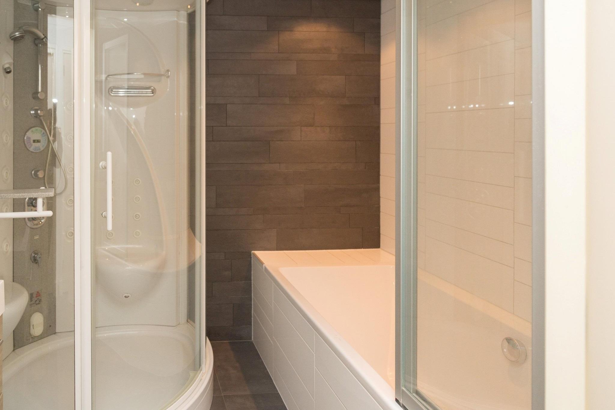Ground floor: (hallway(toilet), open kitchen(hob(induction), electric kettle, hood, coffee machine(filter, pads), combination microwave, dishwasher, fridge, Juicer), Living/diningroom(dining table(4 persons), stove(wood), seating area(4 persons)), bedroom(double bed(twin blanket, two single duvets, 160 x 200 cm)), bedroom(double bed(twin blanket, two single duvets, 160 x 200 cm), ironing board, iron), bathroom(bathtub with shower, steam shower(unit), massage shower, washbasin)) On the 1st floor: (hall(single bed(80 x 200 cm), fridge, freezer, camping cot, changing mat, baby crib(free)), bedroom(single bed(80 x 200 cm), single folding bed), toilet(washbasin)) garden doors, heating, garden(private, fenced), garden furniture, BBQ, parking, parasol, bicycles available(on request)