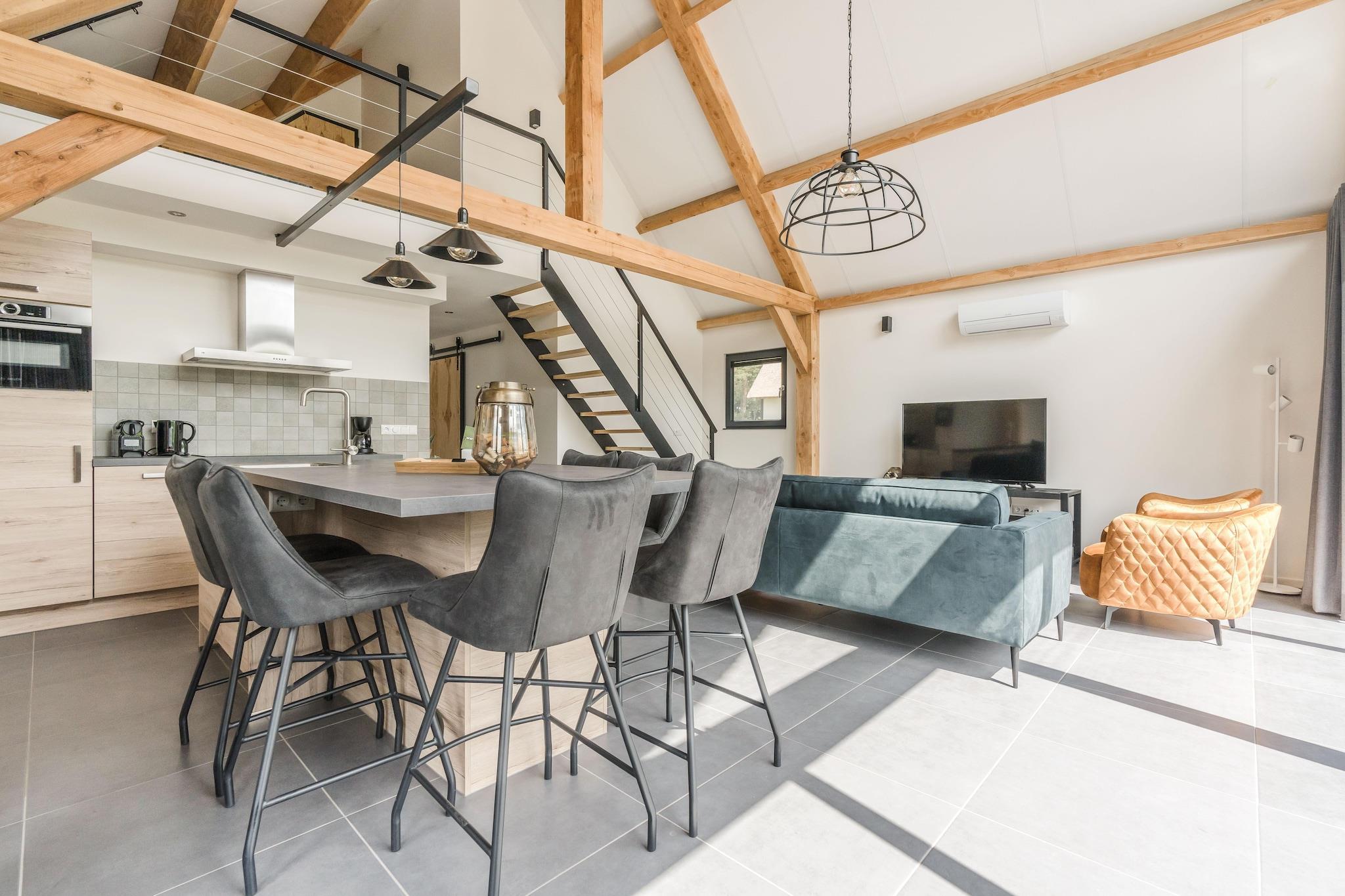 This beautiful holiday home owes its charming appearance to the combination of exquisite materials such as wood, stone, glass and a thatched roof. The practical arrangement of this house has allowed the height in the living room to be retained. This is further highlighted by the almost entirely glass front. Of course, contemporary standards have been taken into account in the design of this accommodation. This means you have a TV, free Wi-Fi and a fully equipped kitchen with a Nespresso coffee maker. You'll enjoy extra comfort in the bedroom on the first floor, complete with en-suite. The neatly landscaped garden features comfortable garden furniture with a beautiful view of the charming pond. You'll find everything you need to make you feel right at home. Open Monday to Friday from 9am to 3pm. On Saturdays and Sundays the reception is open from 10am to 2pm. Companies that wish to enter the Park before and/or after reception opening hours must contact the resident directly. Note: There is again a great drought, which makes the risk of forest fire very high. Therefore, BBQ on open coals/briquettes, fire baskets etc. are prohibited.