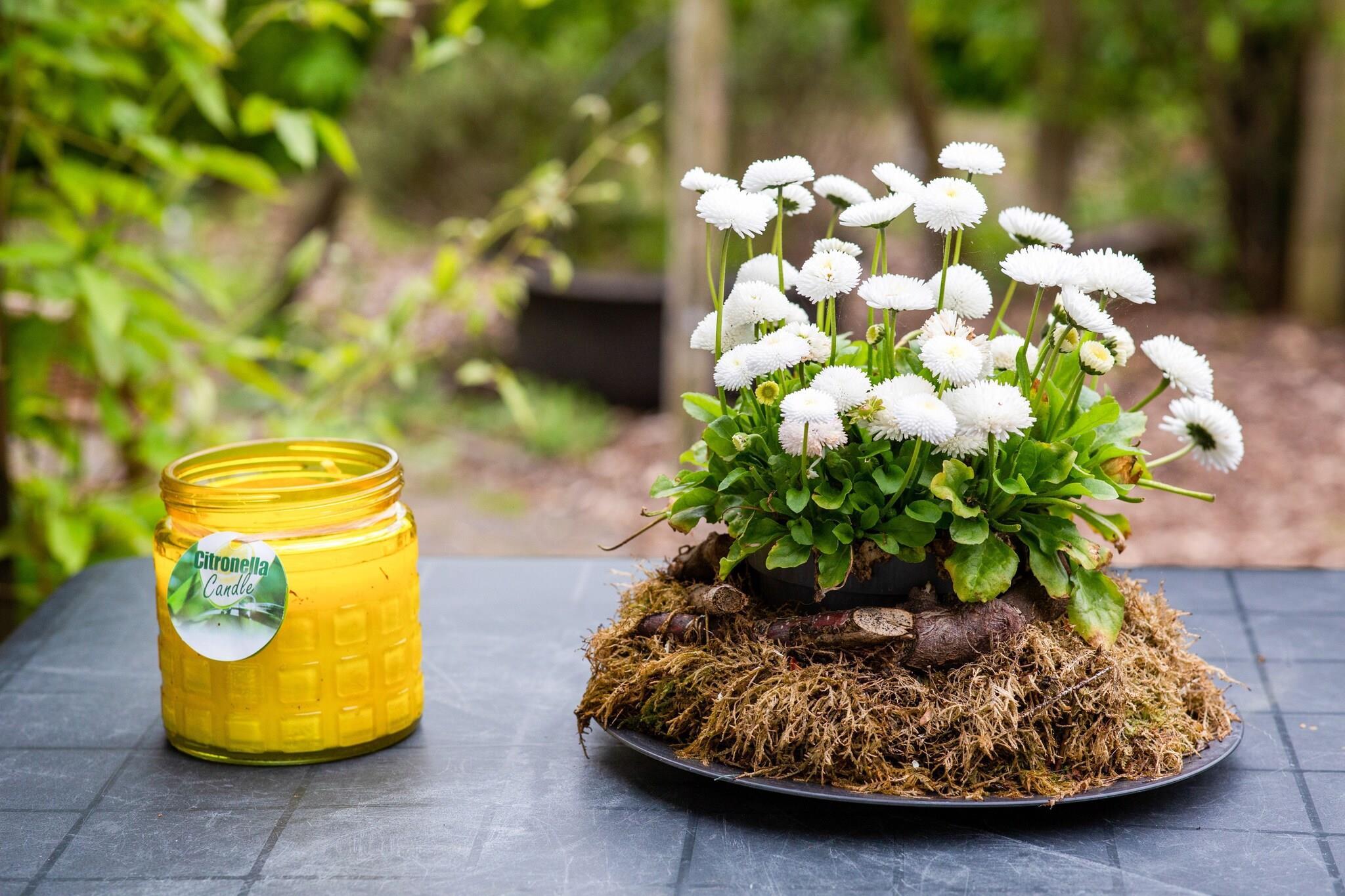 Ground floor: (open kitchen(stove, coffee machine, microwave, fridge), Living/diningroom(dining table, seating area), bedroom(double bed), bathroom(shower, washbasin, toilet)) terrace, garden furniture