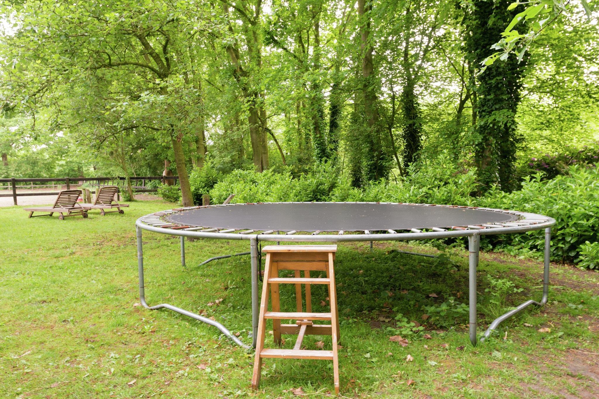 Ground floor: (hallway(infrared sauna, toilet), Living room(double fold-away bed, TV(satellite), fireplace), Kitchen(oven, microwave), Large kitchen(oven, dishwasher, fridge-freezer, tumble dryer, washing machine), Bedroom with bathroom(3x single bed, shower, washbasin, toilet), bathroom(bath tub, shower, washbasin, toilet), library, high chair, playpen) On the 1st floor: (Bedroom with bathroom(3x single bed, shower, washbasin, toilet), Bedroom with bathroom(2x single bed, shower, washbasin, toilet), Bedroom with bathroom(4x single bed, shower, toilet)) recreation room, TV, fireplace, coffee machine, microwave, dishwasher, bathtub or shower, hot tub(heated with fire), shower, washing machine, meetings, heating(central), terrace, garden, garden furniture, sun loungers, BBQ, trampoline, deckchairs, billiards, children's bed, 2x children's bed, 2x high chair, playpen, party games