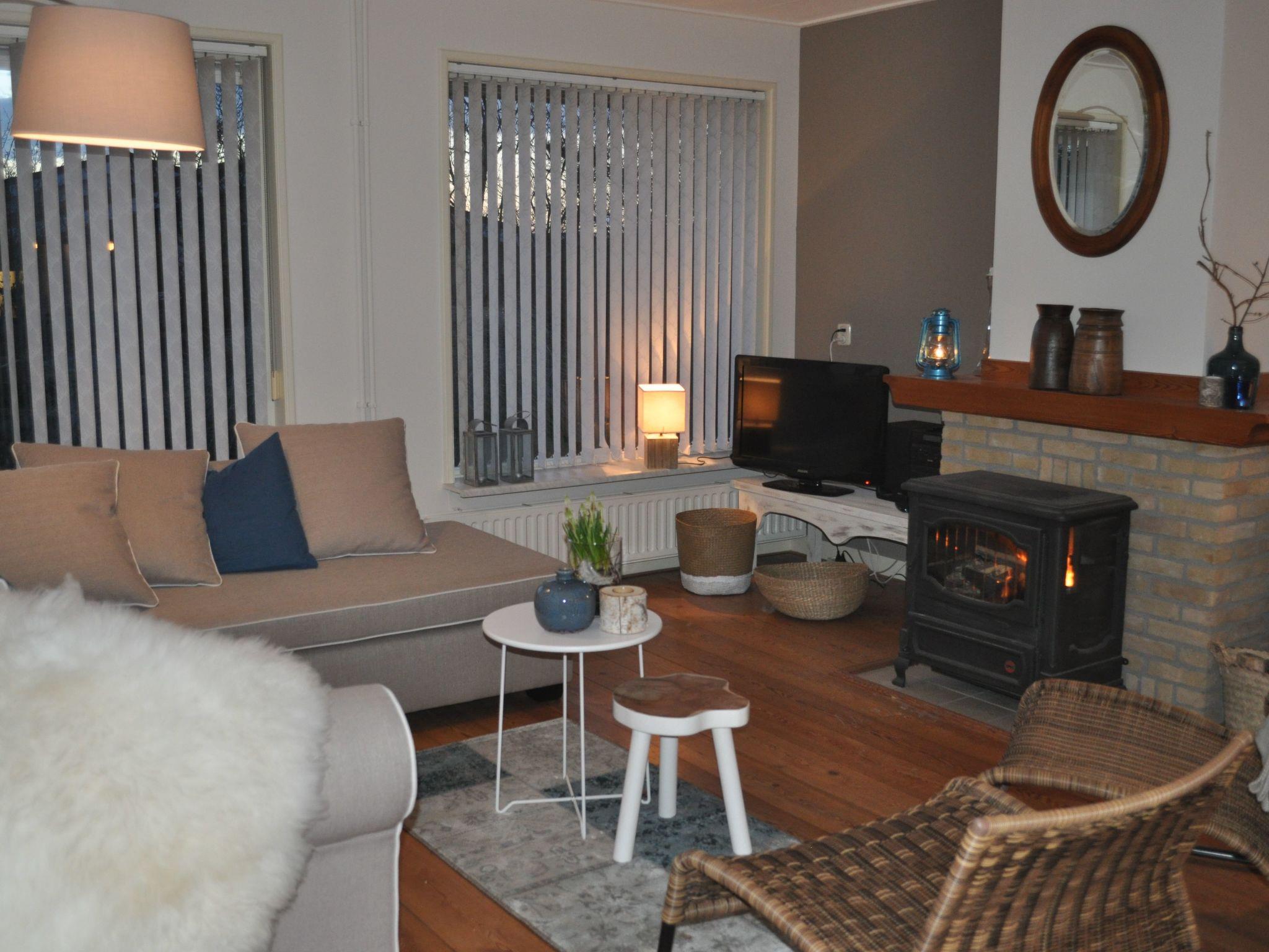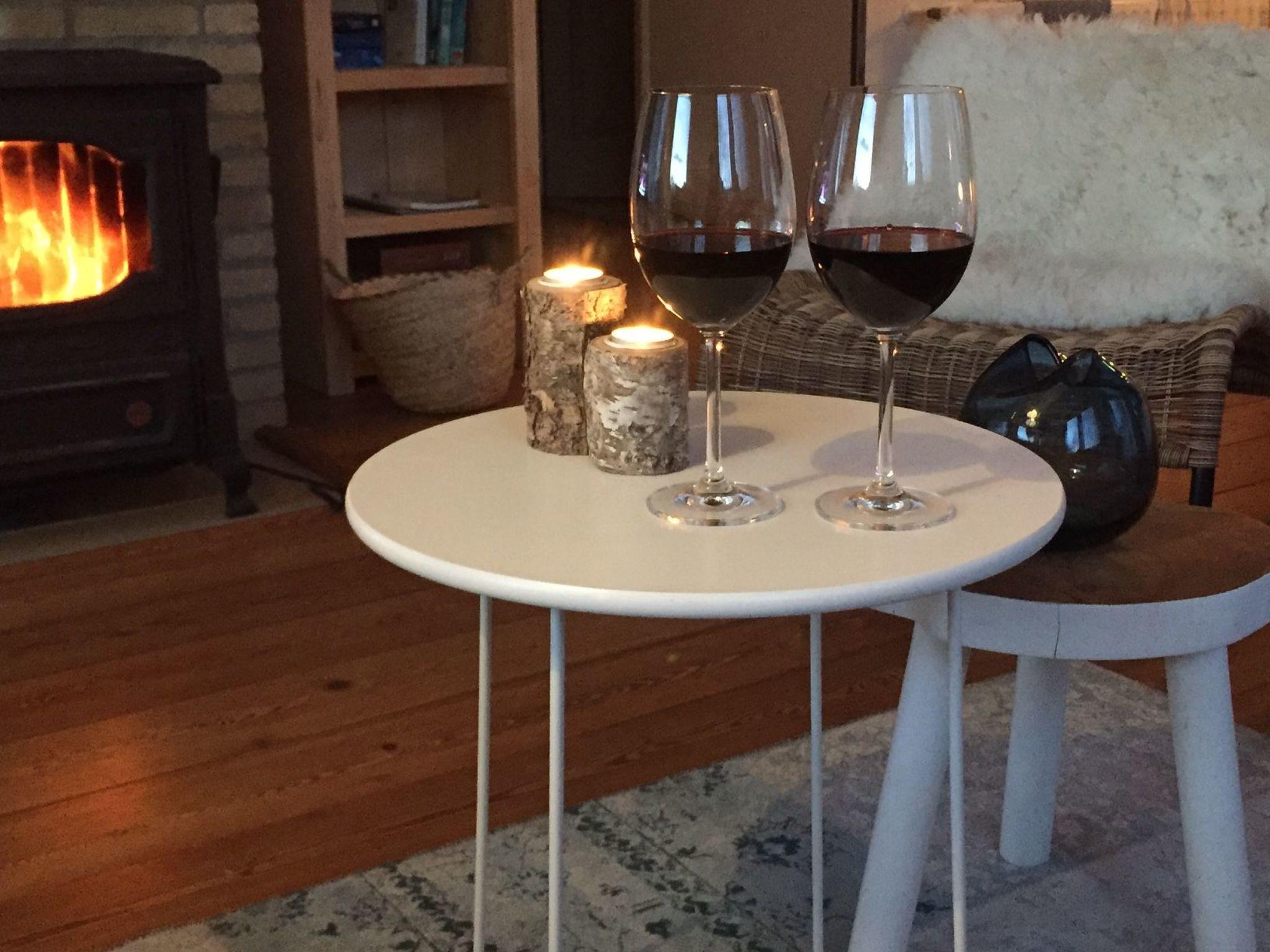 There is also a hairdryer. The kitchen is equipped with a fridge, dishwasher, coffee maker, toaster and combi microwave. The living room has a dining table and a seating area with flat-screen TV, stereo and a sonos player. There is also a wood-burning stove for extra cosiness on colder days and a charging point for an E-bike in the indoor storage room.