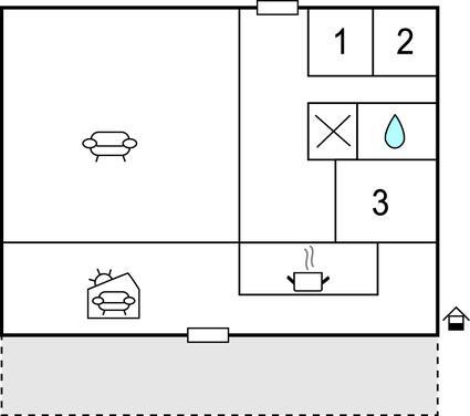 Dieser separate Teil des Hauses verfügt über ein gemütliches Wohnzimmer mit einer hohen Decke, einem Kamin und einer schönen Aussicht. Es ist mit einer Stereoanlage, einem Fernseher, einem DVD-Player, drahtlosem Internet und vielen Sitzgelegenheiten ausgestattet. Die offene Küche mit einem runden Esstisch mit 6 Stühlen ist durch eine Glaswand mit Terrassentüren mit der Außenterrasse verbunden und ist komplett ausgestattet mit Geschirrspüler, Backofen, Gasherd mit 4 Flammen, Kühlschrank mit Gefrierfach. Die schöne, geschützte Terrasse nach Süden mit Gartenmöbeln und ganztägigem Sonnenschein ist ein idealer Ort zum Faulenzen.