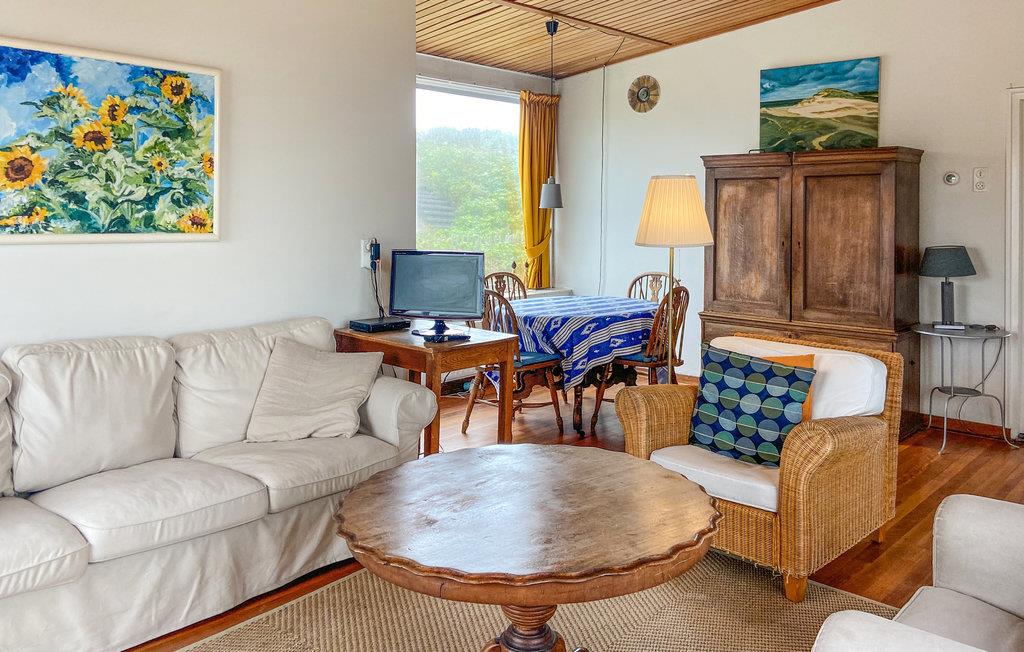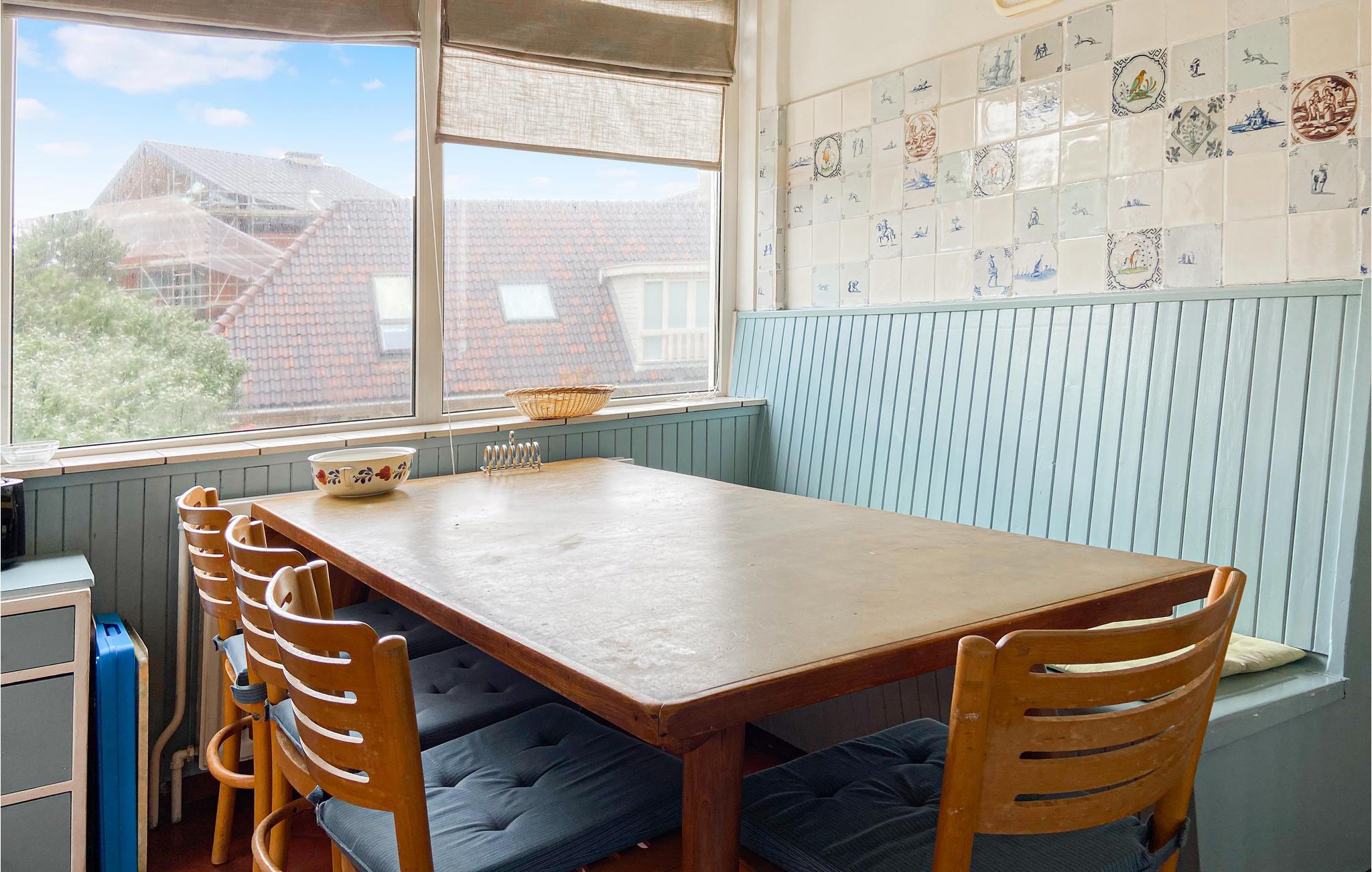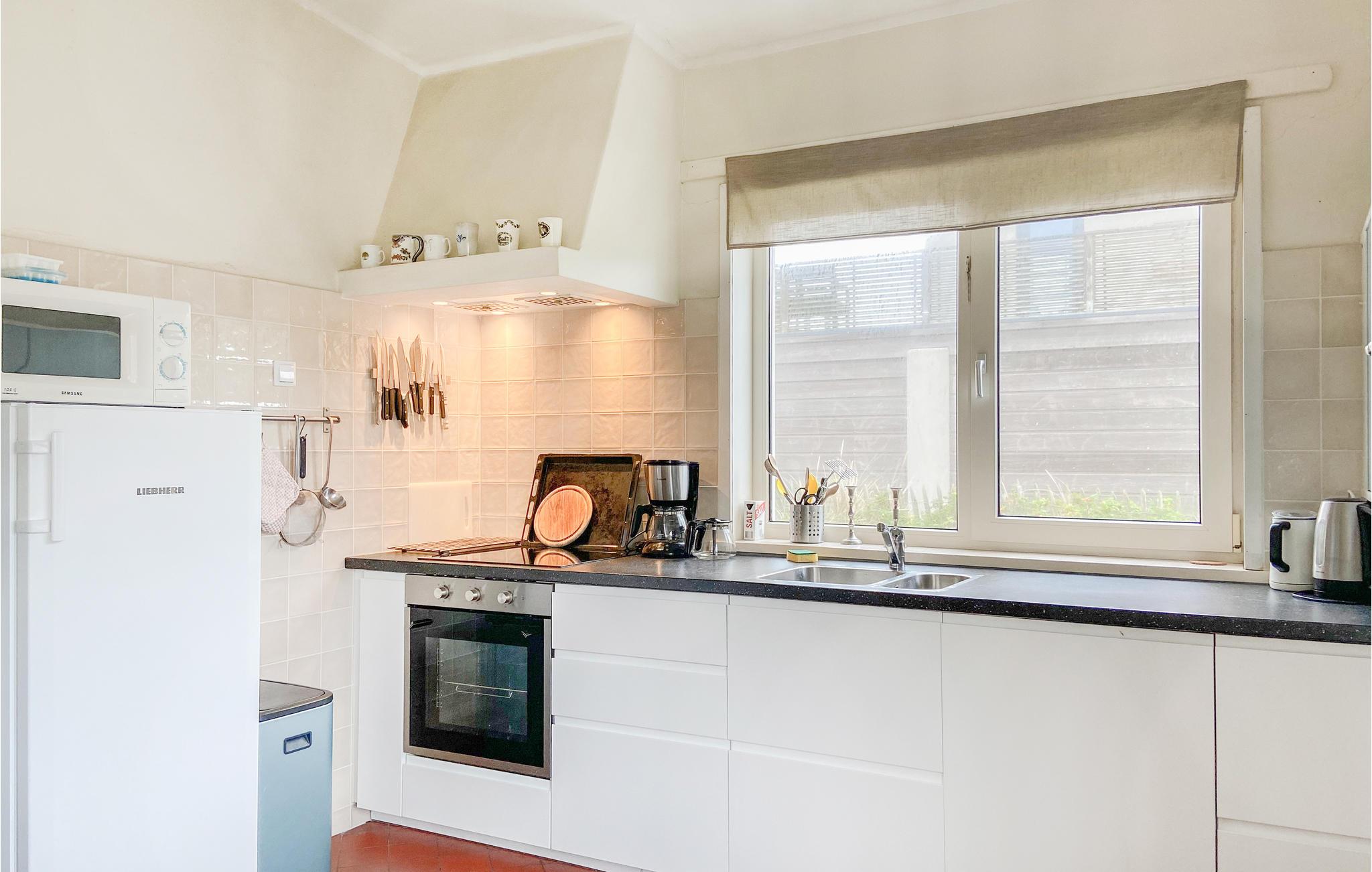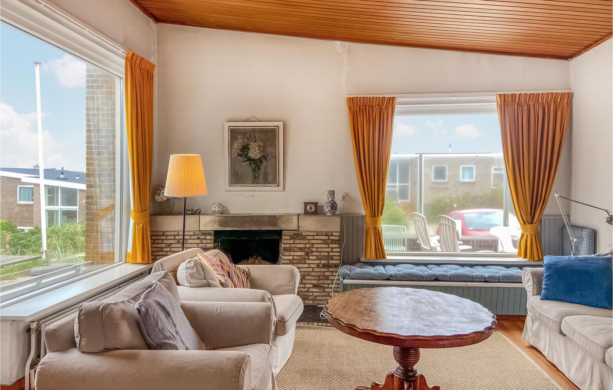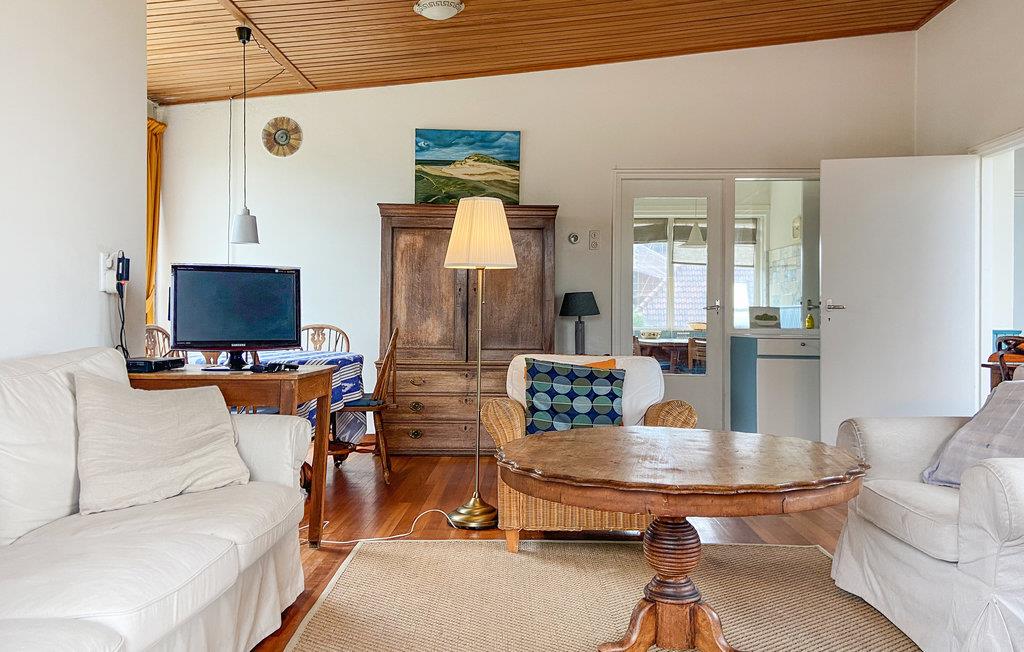 Betreten Sie Ihr historisches Ferienhaus in unmittelbarer Nähe zu Strand und Meer und genießen Sie eine Unterkunft mit einfachem, aber gemütlichem Charakter. Durch die großzügige Eingangshalle gelangen Sie in das Wohnzimmer, das mit Kamin, Sofa, Sesseln und TV ausgestattet ist. Machen Sie es sich am runden Holztisch bequem oder entspannen Sie auf dem Sofa am Fenster. Die großen Fenster geben den Blick auf die umliegenden Dünenhäuser frei. Nutzen Sie die separate Küche, die funktional eingerichtet ist und über alle notwendigen Geräte verfügt. Ein großer Esstisch mit mehreren Stühlen sowie eine eingebaute Sitzbank bieten Platz für gemeinsame Mahlzeiten. Die Einrichtung ist zweckmäßig und vermittelt den Charme eines klassischen Strandhauses.