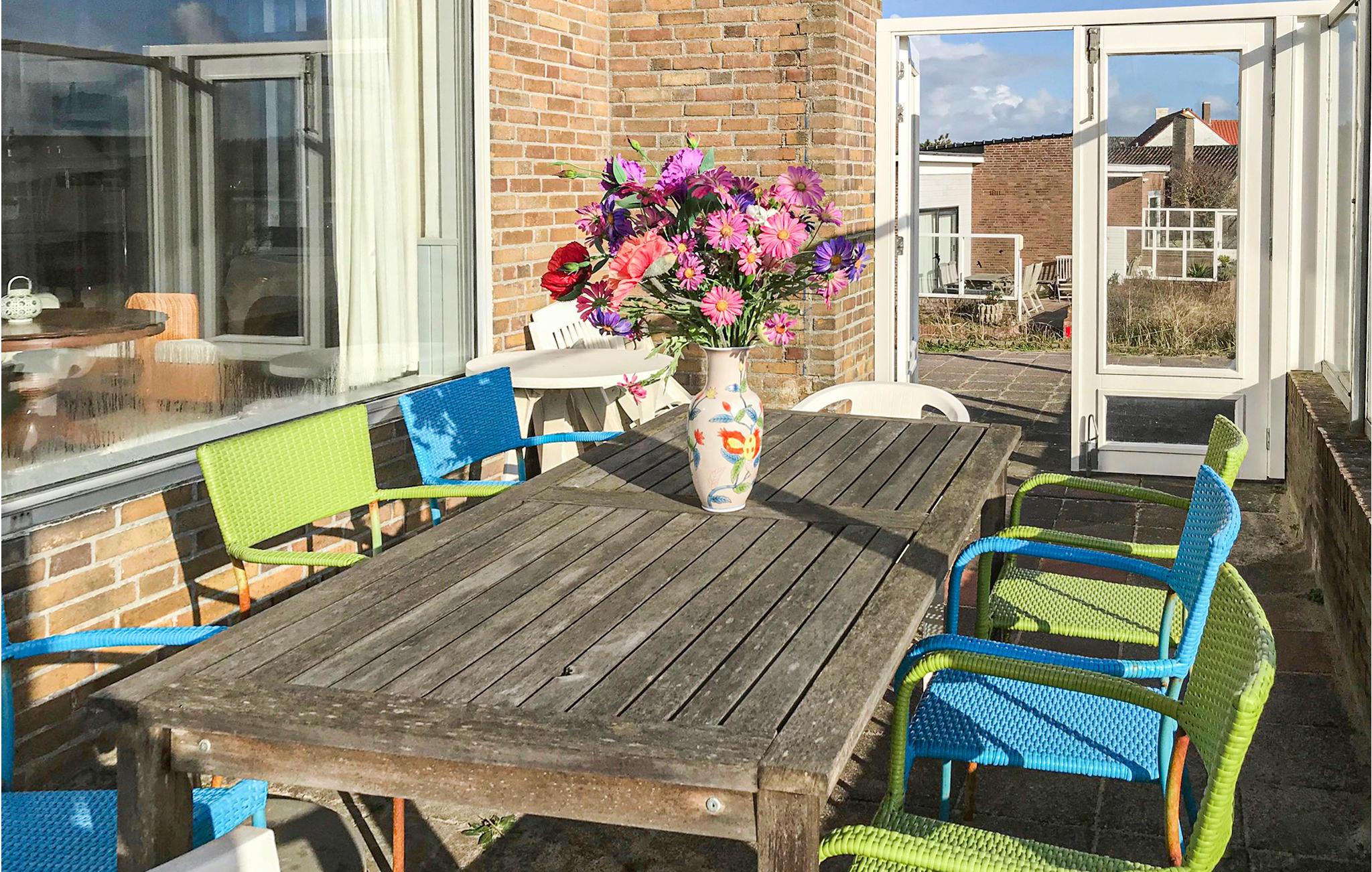 Treten Sie hinaus auf die geschützte Sonnenterrasse, die direkt am Haus liegt. Ein großer Holztisch lädt dazu ein, draußen zu sitzen. Die windgeschützte Lage zwischen Haus und Dünen schafft einen angenehmen Platz zum Verweilen. Genießen Sie hier sonnige Stunden oder planen Sie Ihre nächsten Unternehmungen.
