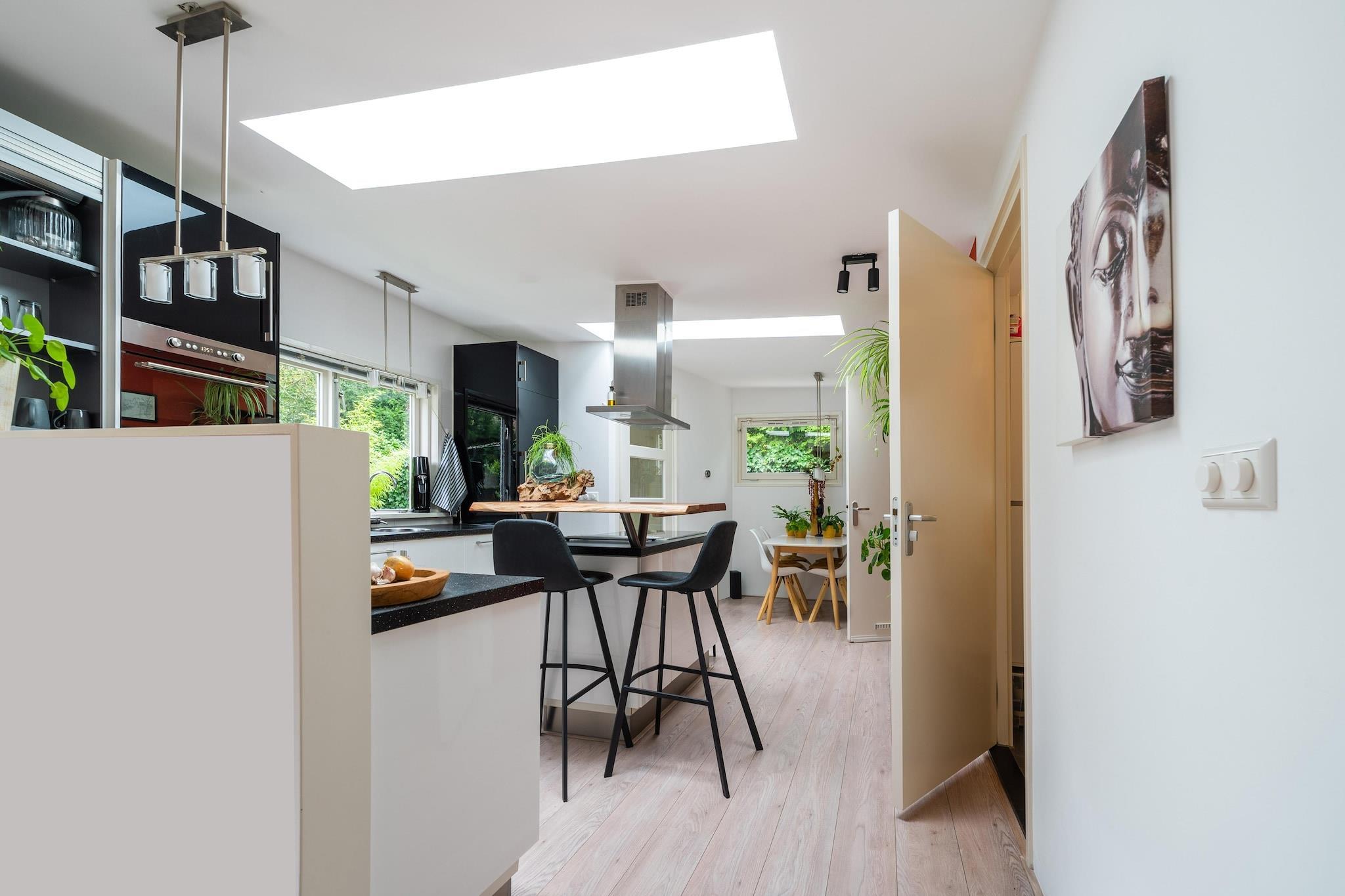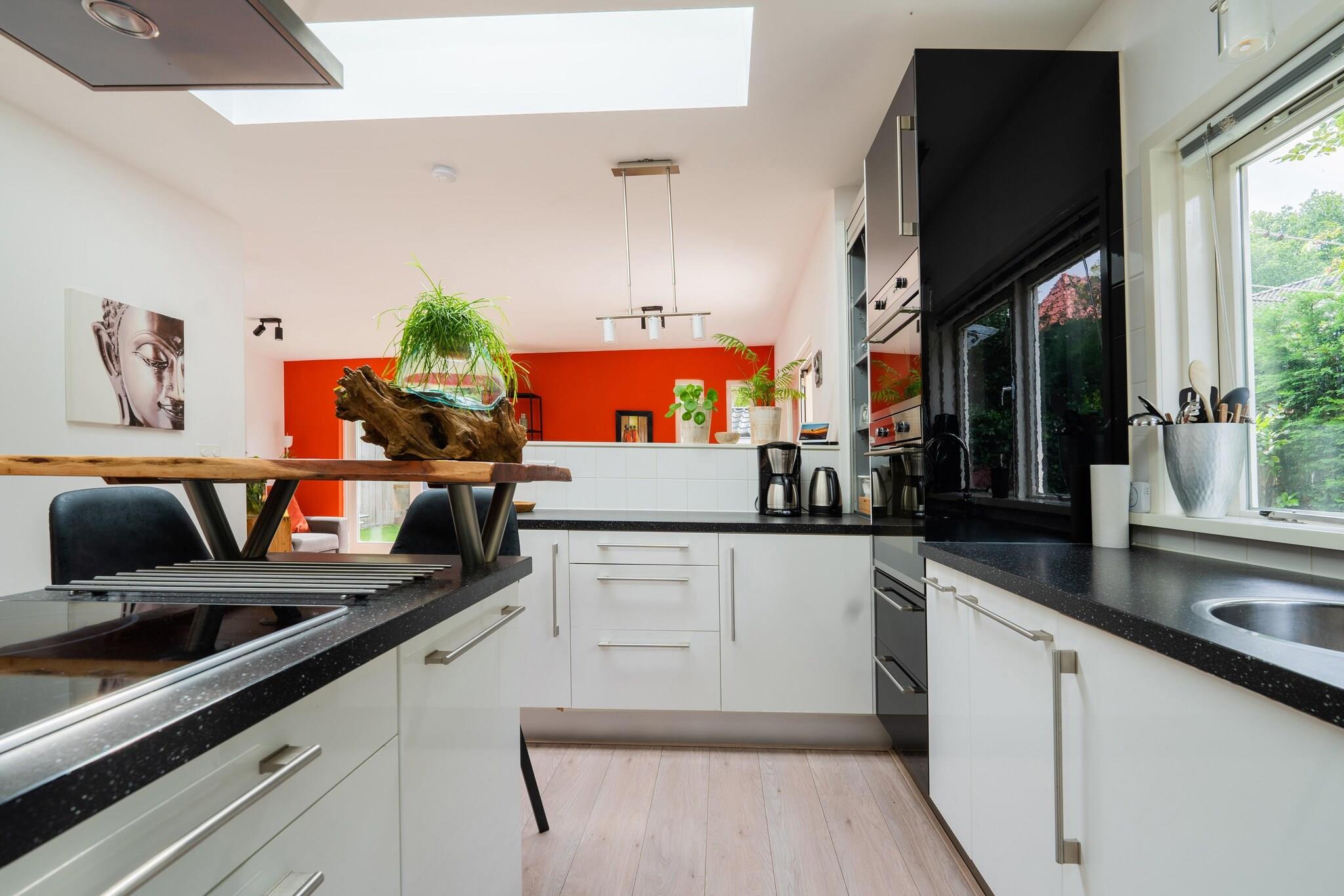 Nestled in the scenic town of Bergen, this award-winning holiday home offers a luxurious escape for up to four guests. Surrounded by lush forests and just minutes from the beach, it's perfect for nature lovers and relaxation seekers alike. With modern amenities and a private fenced garden, this pet-friendly retreat ensures a comfortable and tranquil stay. The ground floor features a stylish living room with a fireplace, smart TV, streaming service, and garden doors leading to the terrace. The open kitchen is fully equipped with an induction hob, coffee machines, oven, microwave, dishwasher, and fridge-freezer, complemented by a cozy eating bar. The main bedroom boasts a double bed, while the annex offers a double trundle bed and solarium. The bathroom includes a walk-in shower, washbasin, toilet, and laundry facilities. Guests can enjoy a private sauna, outdoor kitchen, barbecue, and a serene pond. Additional conveniences include bicycle storage, a garden shed, and a charging post for electric cars. Nearby, explore Museum Kranenburgh, a cultural hub showcasing contemporary art, or visit the historic Ruïnekerk, a striking medieval church. Nature enthusiasts can wander through Bergerbos, a stunning forest perfect for hiking. For dining, Onder de Linde offers exquisite seafood, while Bergen Binnen serves delicious Dutch cuisine in a stylish setting. Whether you're indulging in local flavors or discovering cultural gems, this retreat promises an unforgettable experience.