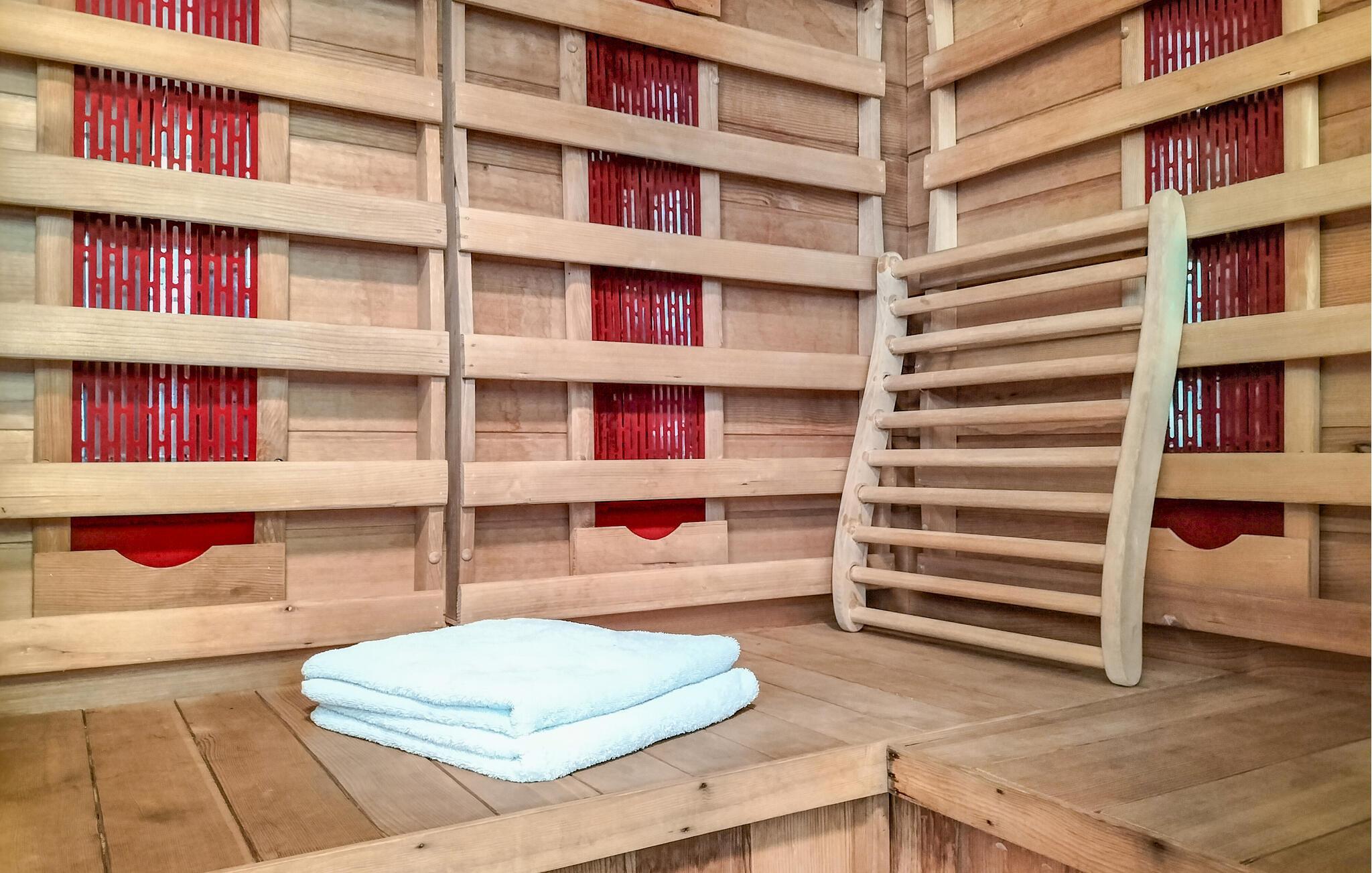 Das Ferienhaus ist sehr gepflegt eingerichtet. Im Erdgeschoss befindet sich eine voll ausgestattete Küche, ein gemütliches Wohnzimmer mit Gasherd und Esstisch, ein Schlafzimmer, ein Badezimmer mit begehbarer Dusche und Waschbecken, ein separates WC und ein Abstellraum mit Waschmaschine und Trockner. Auf der ersten Etage befindet sich ein geräumiges Badezimmer mit Badewanne, begehbarer Dusche, Waschbecken und Infrarot-Sauna. Im ersten Stock sind auch drei Schlafzimmer, zwei mit einem Fernseher. Ein Treppengitter ist vorhanden. Kinderbetten, Hochstühle, DVDs und Gesellschaftsspiele sind ebenfalls im Ferienhaus verfügbar.
