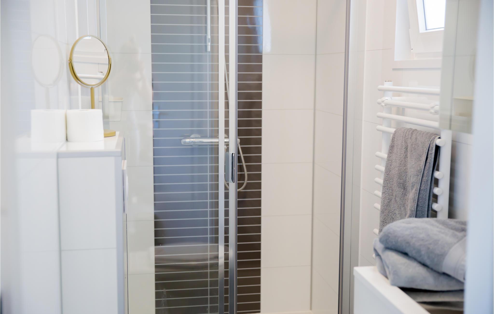 Badezimmer (nr. 1) - WC. Warmes und kaltes Wasser. Dusche