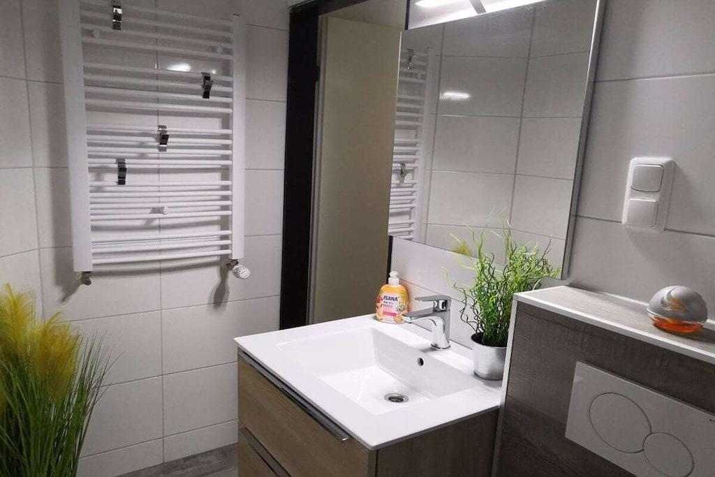 With approximately 60 m² of living space, we offer a newly furnished and renovated holiday home in the very well-maintained Aquadelta/De Kreek holiday park. Warm colors invite you to relax in the cozy living area. The bedrooms, each accommodating two people, are located on the ground floor and first floor. The stairs are secured with stair gates for small guests, both downstairs and upstairs. The bed on the ground floor is a box spring bed with storage space. The bathroom has been completely renovated (2019) and has a walk-in shower. The beautiful open-plan living/dining area features newly furnished furniture. A refrigerator-freezer combination is available in the dining area. For younger guests, a Hauck travel cot (Sleep'n Play Go Plus) and/or a sleeper cube (convertible to sleep a third child), as well as a Herlag highchair, are available in our cottage. The kitchen is equipped with a filter coffee machine, Senseo pod machine, coffee/tea maker, toaster, kettle, microwave (with grill), and hand blender set. The approximately 70 m² outdoor area is fully fenced (fence height from 1.20 m to 1.80 m) and offers patio furniture, a cantilever umbrella, and a charcoal grill/barbecue smoker. Beach equipment (beach tent, transport seat, etc.) is also available. The park itself offers numerous play equipment for young and old (including an air cushion bouncy castle), a supermarket, restaurants/pizzerias, and a laundromat. Bicycles are also available. and Kettcars/Go-karts for rent.