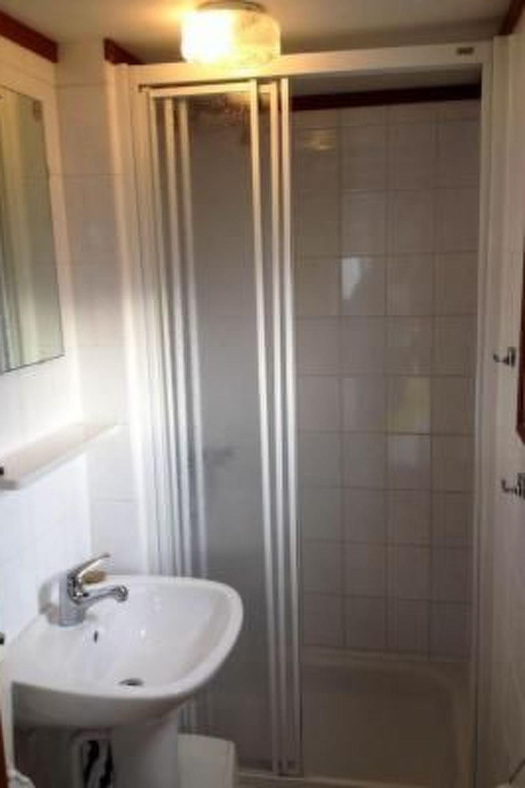 The chalet has two bedrooms, a living and dining room with an open kitchen and a bathroom. The cosy living room includes a sitting corner, cable TV and a dining table with five chairs. The kitchen is equipped with a fridge, kettle, gas stove and coffee machine. The bathroom has a shower, toilet and washbasin. One bedroom is furnished with a double bed (140 x 200cm), the second with a bunk bed (each 70 x 200cm).