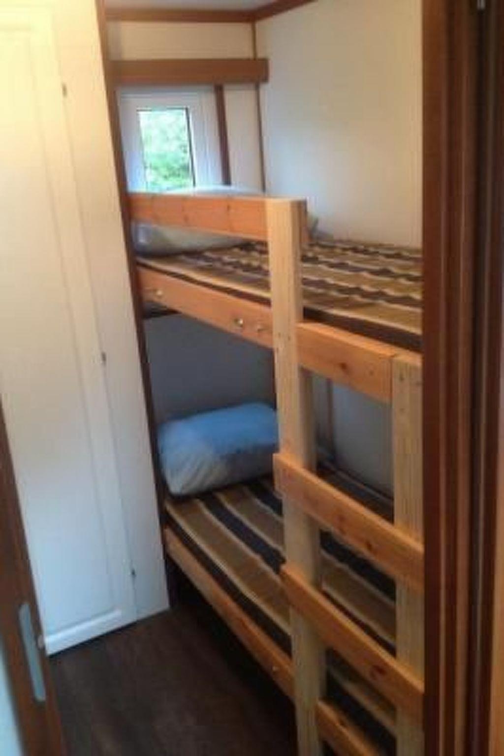 A children’s bed and highchair are available. If it is colder, you can use the gas or electric heating. There are two chalets next to each other.