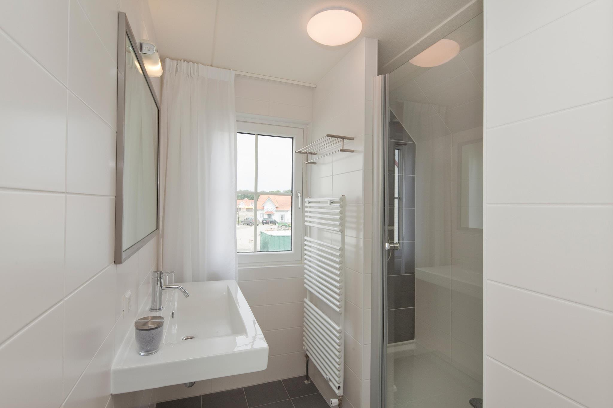 This detached villa is located in the North Sea Résidence Cadzand-Bad holiday park, only 400 m from the North Sea beach and 13 km from the renowned and charming Belgian seaside resort of Knokke. The villa is completely and comfortably furnished and covers two floors. On the ground floor, you'll find a living room and an open-plan kitchen with a dishwasher and microwave. In the hallway, you'll have a separate toilet at your disposal. On the first floor are two bedrooms, each with two single box-spring beds that can be set up as double beds. There are also two bathrooms, one with shower and one with bath. There's a separate toilet on the landing. Through the patio doors, you can reach the garden with (covered) terrace and garden furniture. There's room to park one car at the villa. At Noordzee Résidence Cadzand-Bad there are various villas for rent for four to sixteen people. Note: The layout shown above may vary per holiday accommodation.