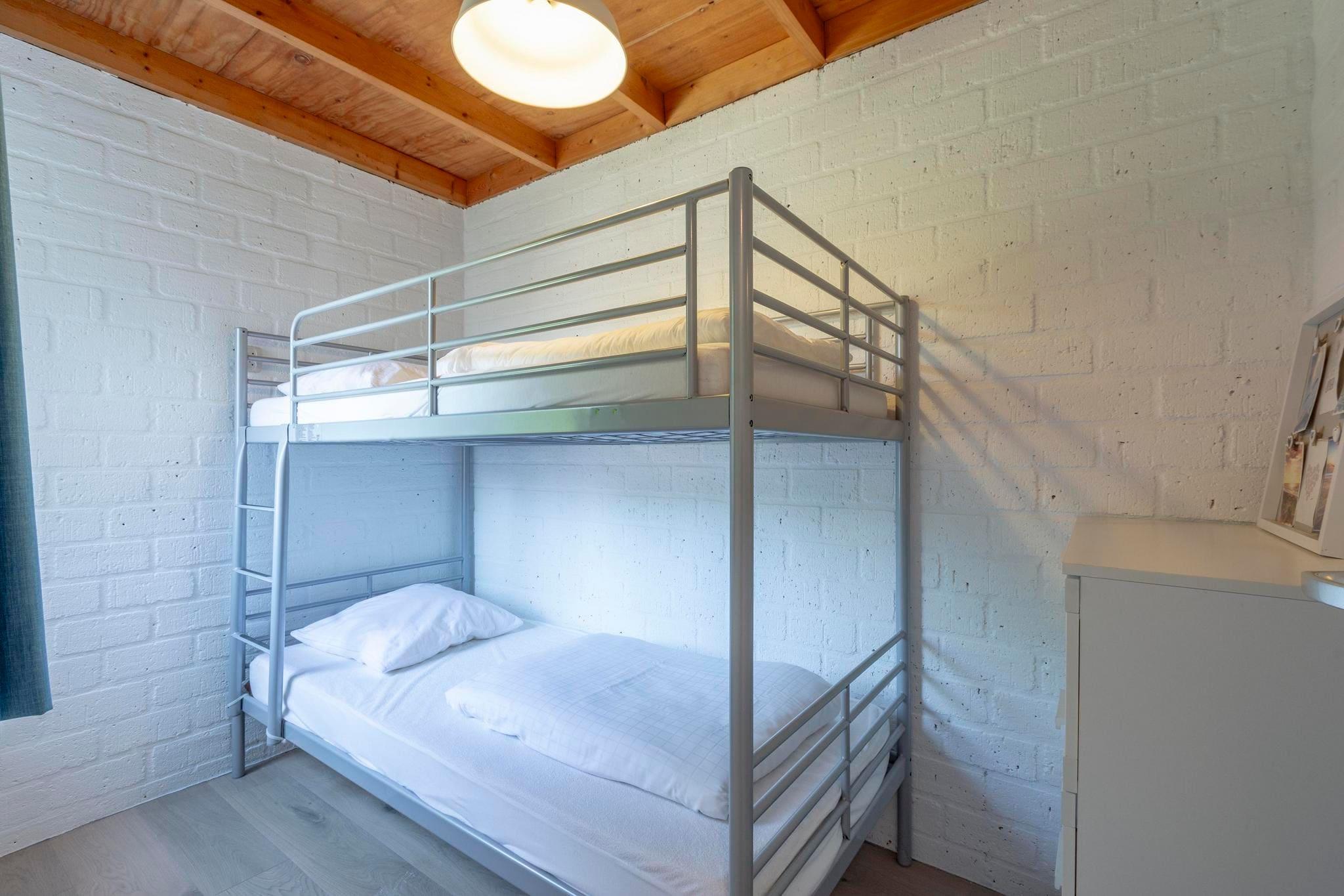 Ground floor: (Living room(TV(flatscreen, smart TV), seating area), Kitchen(dining table, hob(4 ring stoves, gas), electric kettle, toaster, hood, coffee machine(filter, pads), oven, combination microwave, dishwasher, fridge-freezer, dishes and cutlery(Bowls, chopsticks, plates, cups, etc.), Cooking basics(Pots and pans, oil, salt and pepper)), bedroom(single bed(90 x 200 cm), single bed(90 x 200 cm)), bedroom(single bed(90 x 200 cm)), bedroom(bunk bed(90 x 200 cm)), bathroom(shower, washbasin, toilet)) Internet access, washing machine, heating(central), terrace, garden, garden furniture, parking, deckchairs, drying cabinet