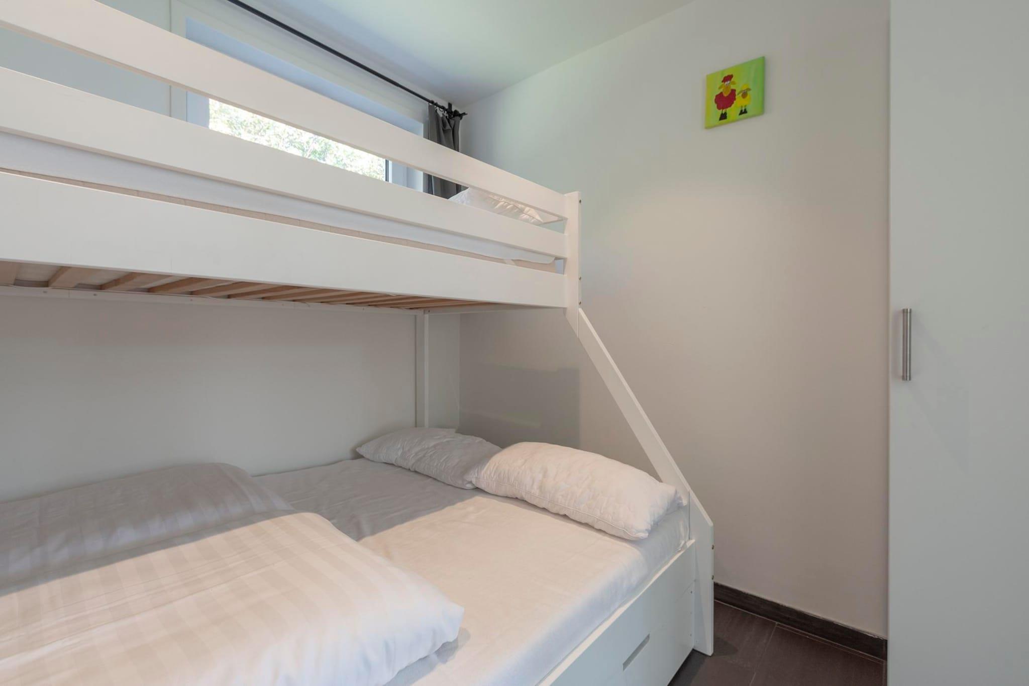 Ground floor: (Living room(TV(flatscreen), seating area, radio), open kitchen(dining table, hob(4 ring stoves, gas), electric kettle, toaster, hood, coffee machine(filter, pads), microwave, dishwasher, fridge-freezer, dishes and cutlery(Bowls, chopsticks, plates, cups, etc.), Cooking basics(Pots and pans, oil, salt and pepper)), bedroom(double bed(140 x 200 cm)), bedroom(bunk bed(90 x 200 cm, 140 x 200 cm)), bathroom(shower(walk-in shower), washbasin, toilet)) Internet access, washing machine, patio, heating(central), terrace, garden(fenced), garden furniture, parking, parasol, drying cabinet