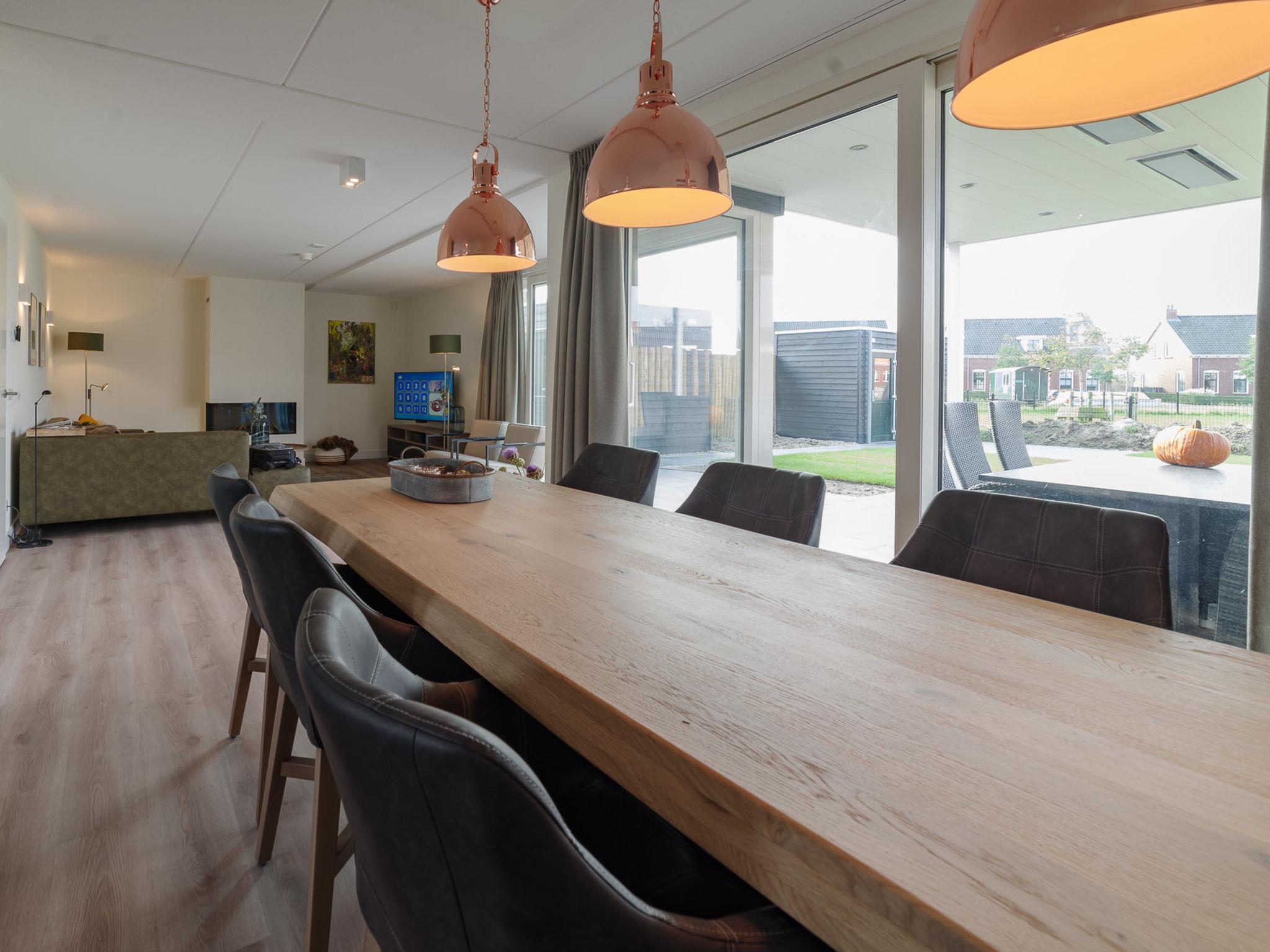 "6-persoons woning met sauna", 4-room house 122 m2 on 2 levels. Comfortable furnishings: living/dining room with dining table and TV (flat screen). Exit to the garden. 1 room with 2 beds (90 cm, length 210 cm), TV. Open kitchen (oven, dishwasher, 4 induction hot plates, kettle, microwave, electric coffee machine, Capsules for coffee machine (Nespresso)). Shower/WC. Underfloor heating. Upper floor: 2 rooms, each room with 2 beds (90 cm, length 210 cm), TV. Bath or shower/WC. Terrace, large garden. Terrace furniture, barbecue. Facilities: washing machine, dryer, hair dryer. Internet (WiFi, free). Parking at the house. Please note: non-smoking house. Smoke alarm. The accomodation has a sauna in the garden. Pet on request.