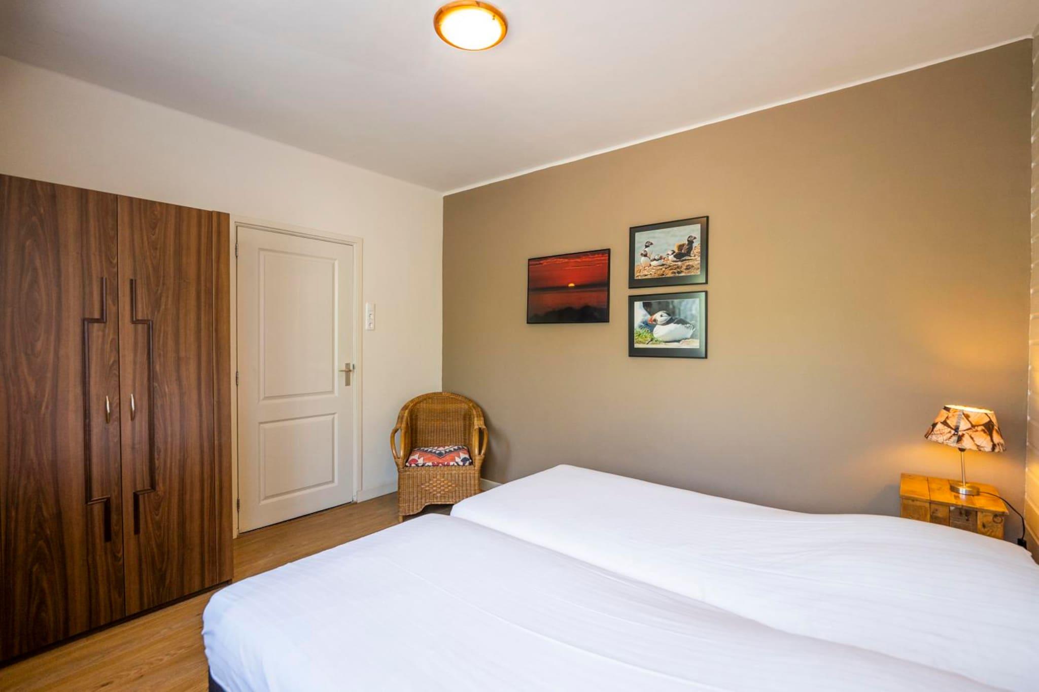 This beautiful ground-floor apartment in De Koog offers a comfortable and inviting space for up to four guests, ideally located within walking distance of the stunning beach on Texel. Situated in the small-scale Strandhuys complex nestled in the forest on the north side of De Koog, the apartment provides a peaceful retreat close to nature and the lively seaside village. The spacious living area features cozy seating and a dining table, creating a perfect environment for relaxing or shared meals. The open kitchen is fully equipped with a dishwasher, refrigerator, and a combination microwave, making meal preparation convenient. The apartment has two bedrooms: one with two single beds and the other with a bunk bed, accommodating families or friends comfortably. The bathroom includes a walk-in shower and toilet, and guests can use the shared washing machine and dryer for added convenience. Step outside to enjoy the sunny south-facing terrace, ideal for outdoor dining and lounging in the fresh sea air. Additional amenities include Wi-Fi, a flat-screen TV, and parking. The apartment benefits from central heating, ensuring a cozy stay year-round. The location offers direct access through the dunes to the wide sandy beach of De Koog, making it an excellent base for beach holidays, exploring nature, and enjoying the vibrant seaside atmosphere of Texel’s most popular resort.