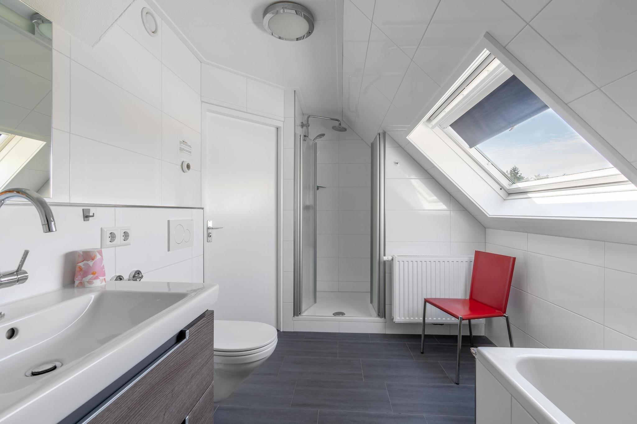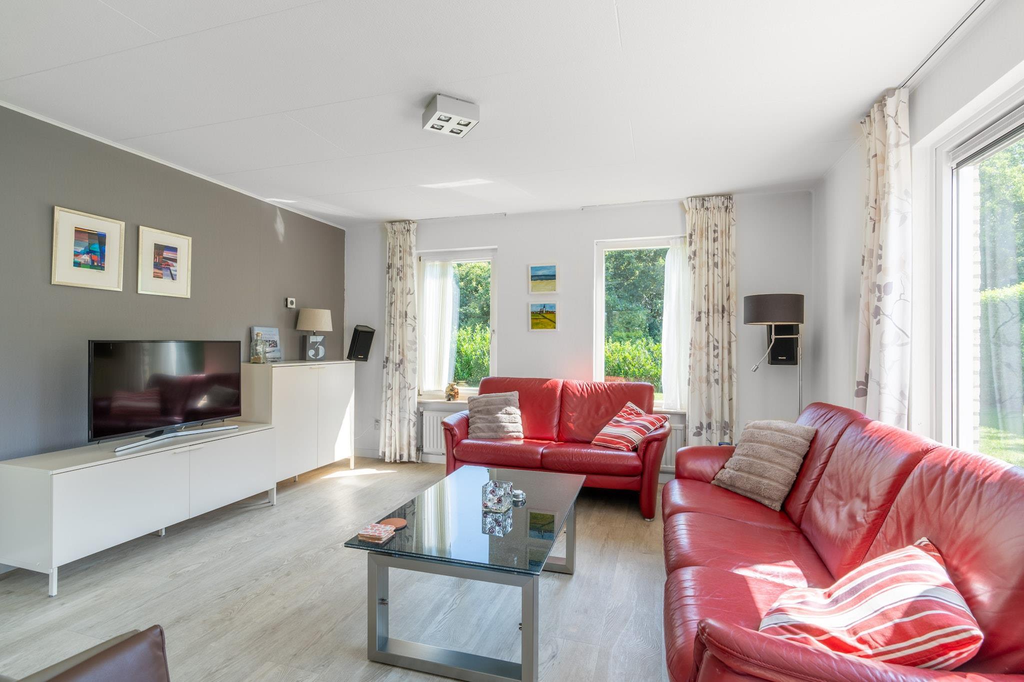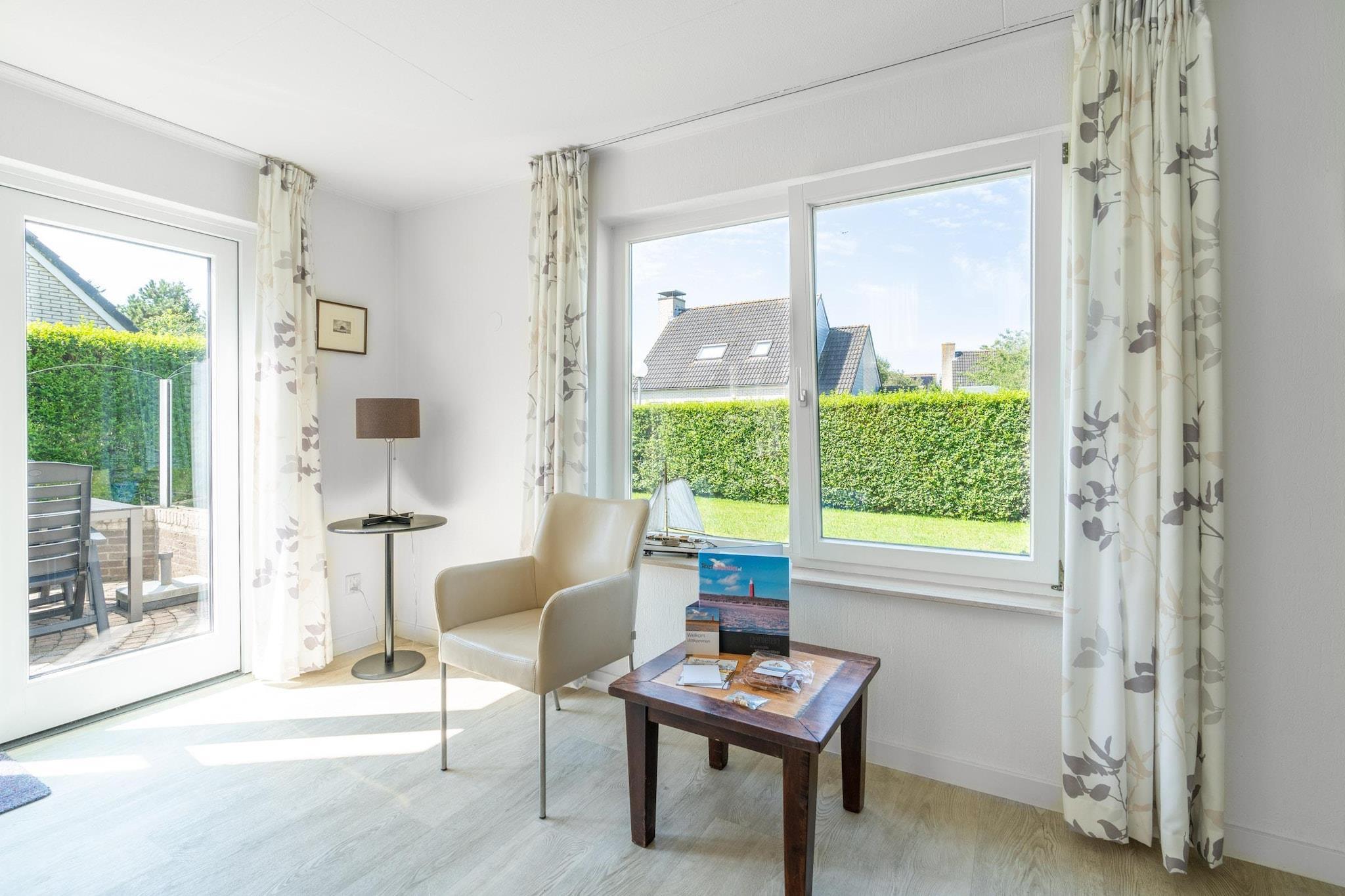 The bright living room features a sitting area, smart TV, and music system. The spacious open-plan kitchen is fully equipped, including a dishwasher, fridge-freezer, combination microwave, and various coffee machines. There's also a spacious dining area with a dining table for four. There are two bedrooms, one with a TV. Both are located on the first floor and are furnished with two single box-spring beds. The bathroom has a rain shower, whirlpool tub, double sink, and toilet. From the living room, French doors open onto the terrace and the spacious southwest-facing garden. The terrace is furnished with garden furniture, including a lounge set. For children, there's a shared playground with various play equipment near the villa. Two private parking spaces are available. This holiday home is located at Villapark Kamperfoelie, a spacious, small, and intimate five-star park on the edge of the seaside resort of De Koog. This park features luxury villas offering plenty of privacy and comfort. They're a 5-minute walk from the charming village center and less than a 15-minute walk from the beach. In short: a perfect spot where you can discover peace, space, and that island feeling.
