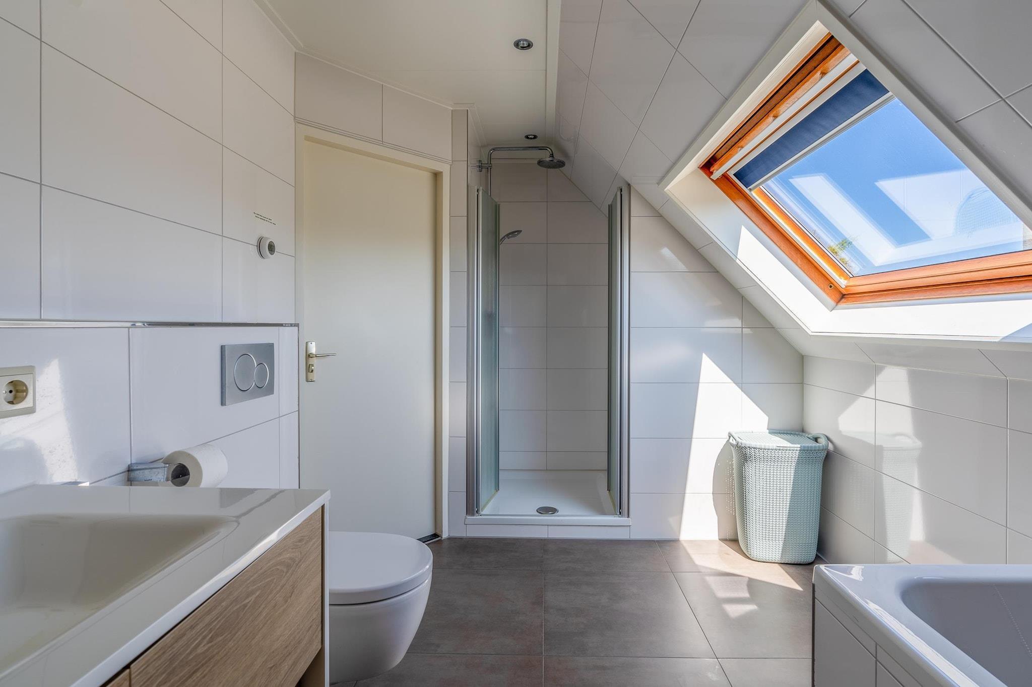Ground floor: (hallway, Living room(TV, seating area), Kitchen(hob(gas), electric kettle, coffee machine, dishwasher, fridge-freezer), toilet, pantry(tumble dryer, washing machine)) On the 1st floor: (bedroom(double bed(boxspring), TV), bedroom(single bed(boxspring), single bed(boxspring), TV), bathroom(Bubble bath, shower(unit), washbasin, washbasin, toilet, hairdryer)) garden doors, terrace, garden, garden furniture, parking, parasol, play equipment(shared with other guests), children's bed, high chair, stair gate, lounge set, insect screens, Sunscreen, Charging post for electric cars