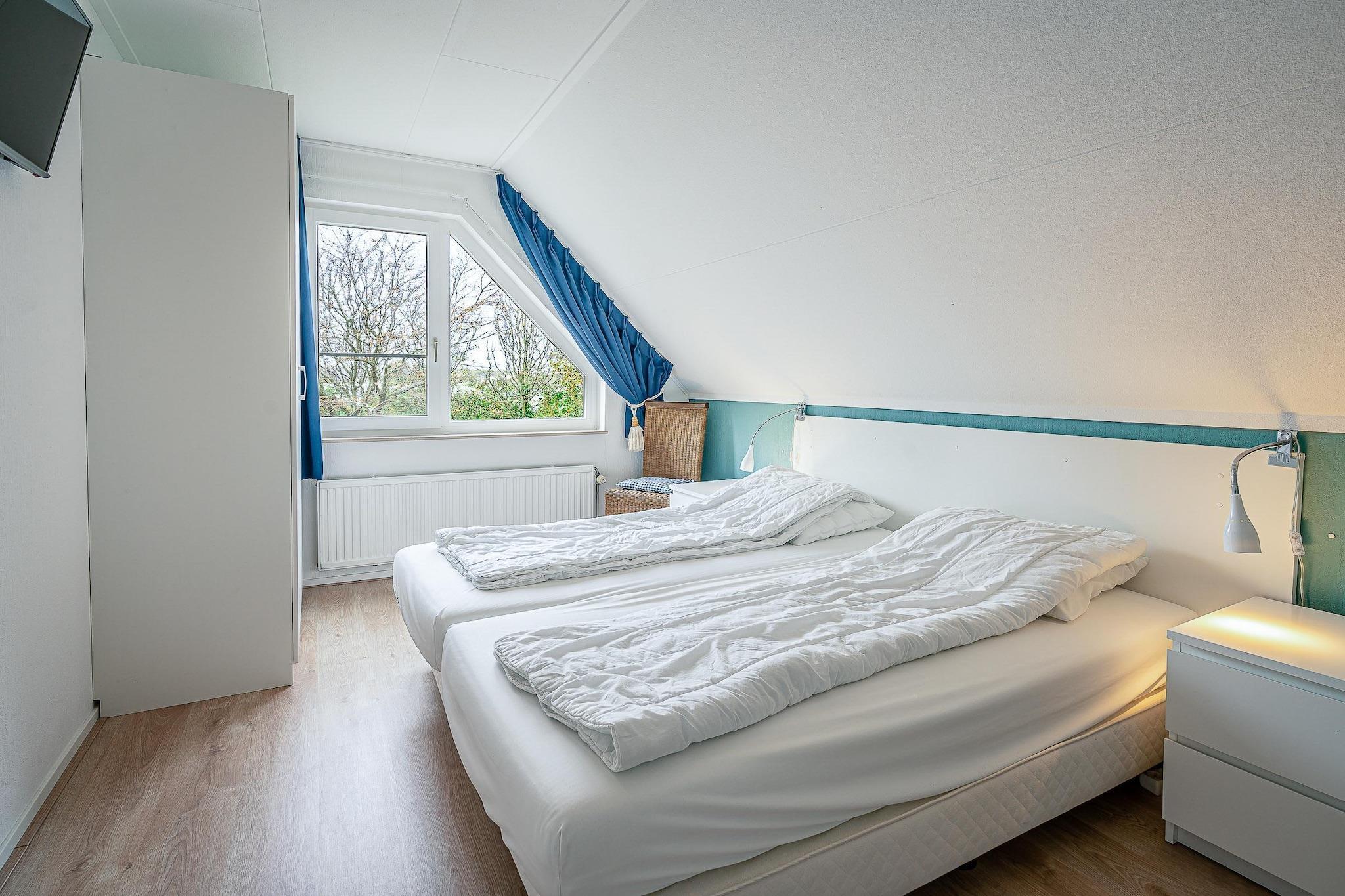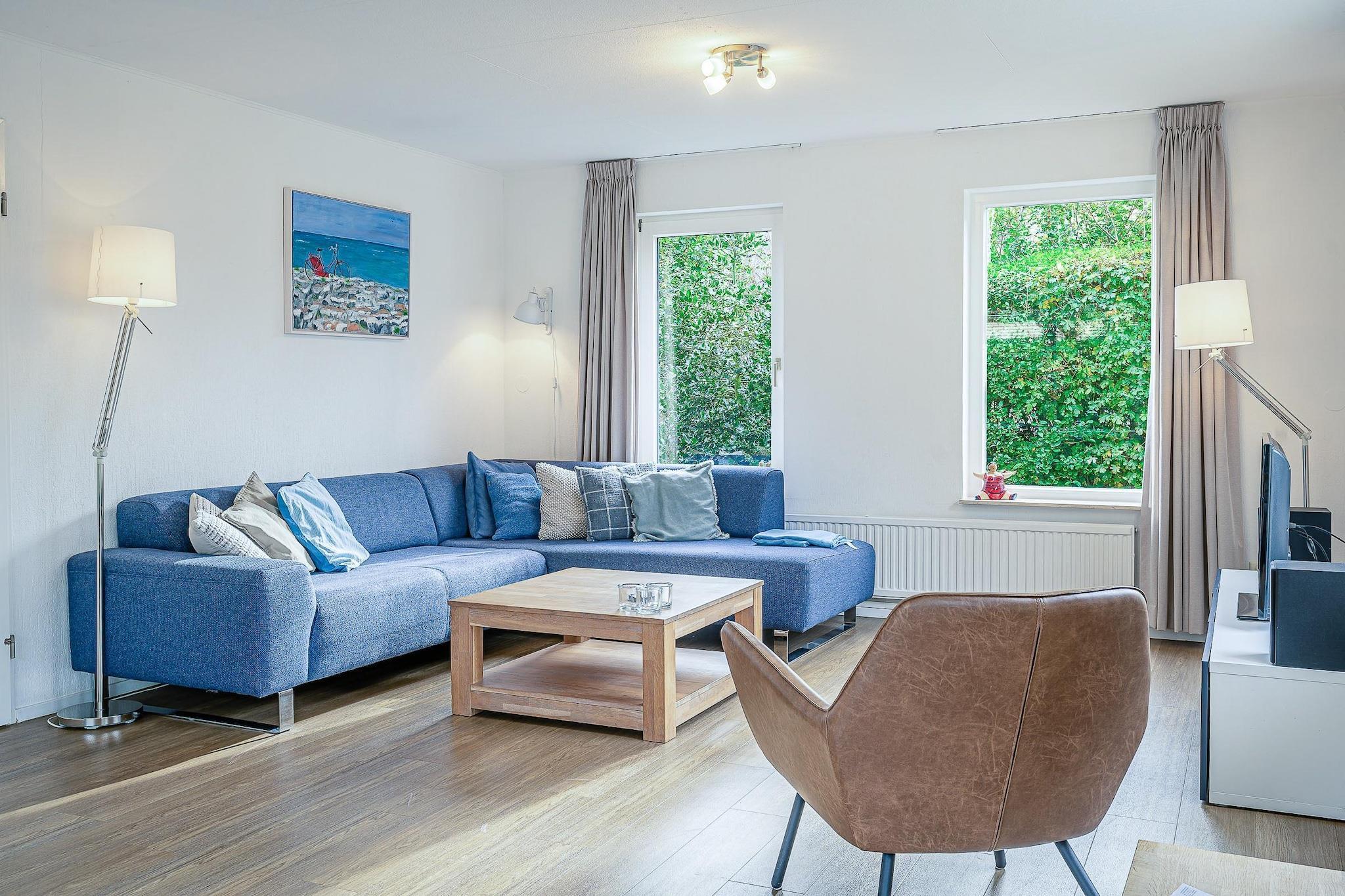 This charming four-person villa, featuring a bathroom with a whirlpool, boasts a lovely, spacious garden with a southwest-facing terrace. It is located near the center of De Koog, the North Sea beach, and a wooded area. The spacious, bright living room includes a sitting area, TV, music system, and reading corner. The spacious open-plan kitchen is fully equipped. There are two bedrooms in total. Both are located on the first floor and are furnished with two single box-spring beds and a TV. The bathroom has a shower, whirlpool, double sink, and toilet. A separate toilet is also located on the ground floor. From the living room, French doors open onto the terrace and the spacious southwest-facing garden. The terrace is furnished with garden furniture, including a lounge set. For children, there is a shared playground with various play equipment near the villa. Two private parking spaces are available. This holiday home is located at Villapark Kamperfoelie, a spacious, small, and intimate five-star park on the edge of De Koog. This park features luxurious villas offering ample privacy and comfort. They're just a 5-minute walk from the charming village center and less than 15 minutes from the beach. In short: a perfect spot to discover peace, space, and that island feeling.