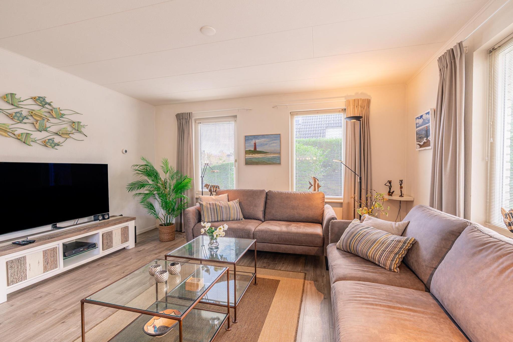 This charming villa for 6 people is within walking distance of De Koog and the beach. The spacious, bright living room is a wonderful place to relax. The open-plan kitchen is fully equipped. There are three bedrooms in total, one of which is on the ground floor. On the first floor, there are two bedrooms, each with two single box-spring beds and a TV. The large bathroom is equipped with a shower, bathtub, whirlpool, and sauna. From the living room, French doors open onto the terrace and lovely garden. The terrace is furnished with garden furniture. For children, there is a communal playground with various play equipment near the villa. Two private parking spaces are available. This holiday home is located at Villapark Kamperfoelie, a spacious, small, and intimate five-star park on the edge of the seaside resort of De Koog. This park features luxurious villas that offer plenty of privacy and comfort. They are a 5-minute walk from the charming village center and less than a 15-minute walk from the beach. In short: a perfect place where you can discover peace, space, and the island feeling.