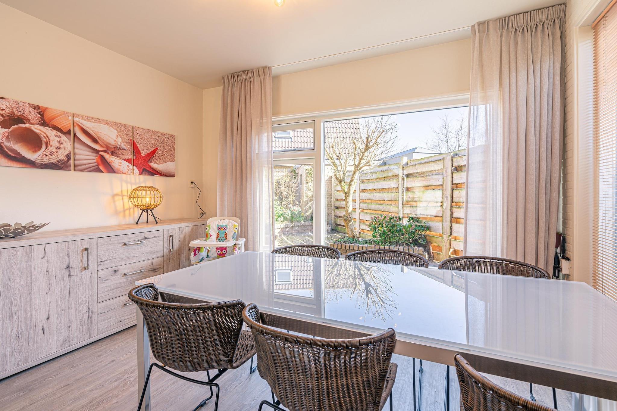 A modern and charming 5-person holiday home located in the seaside resort of De Koog, near the beach and forest. This holiday home is tastefully furnished and fully equipped. The living room features a sitting area with a smart TV. There is a dining area with a large dining table for 6 people. The kitchen is fully equipped with various built-in appliances, including a combination oven, dishwasher, and coffee machines. There is also a separate toilet on the ground floor. On the first floor, there are three bedrooms. One bedroom has a double box-spring bed, one bedroom has two single box-spring beds, and one bedroom has one single box-spring bed. The bathroom with a spacious shower, toilet, and vanity is also located on the first floor. The master bedroom has a TV. The front garden has a covered patio and a lounge set. The fully enclosed back garden is also equipped with garden furniture. The terrace faces southeast. Bicycles can be safely stored in the shed. A washing machine, dryer, and children's furniture are available. Free Wi-Fi is available. This accommodation is non-smoking and two pets are allowed (surcharge). Private parking for one car is available. You share the parking space with the smaller holiday home (Achter de Zandduyn - Ruijslaan 13c). The holiday home is adjacent to our studio apartment at Ruijslaan 13C. These apartments can easily be combined if desired. The gate, normally closed, can be opened, creating a single unit.