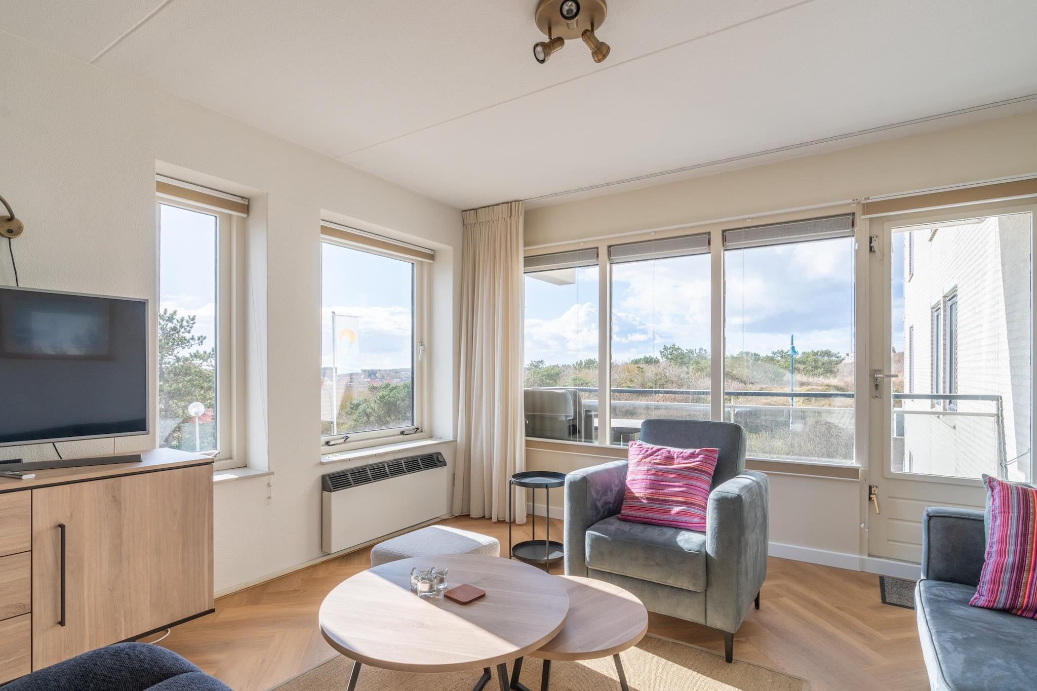 A unique location on the dunes of De Koog! Juliana is situated on the highest dune on Texel, in a breathtakingly beautiful spot in the heart of the Dunes of Texel National Park. From the island's highest dune, you have a view of the fields, the North Sea, and the seaside resort of De Koog. Spacious apartment for two with a large open-plan kitchen. South-facing balcony with a view of De Koog, the Badweg, and the dunes. Living Room and Kitchen The bright living room features a sitting area with a TV and a dining area with a dining table for four. The neat open-plan kitchen is fully equipped, including a dishwasher, combination microwave, refrigerator, and various coffee makers. The bedroom is furnished with two single box-spring beds. The spacious bathroom has a large walk-in shower and a double sink. The toilet is separate. From the balcony, you have a view of the seaside resort of De Koog, and in the morning you can admire a beautiful sunrise. Garden furniture is provided. The complex has a laundry room available for a fee. Children's furniture is available upon request for a fee. Free Wi-Fi. Smoking is not permitted. One parking space is available on-site for each accommodation.