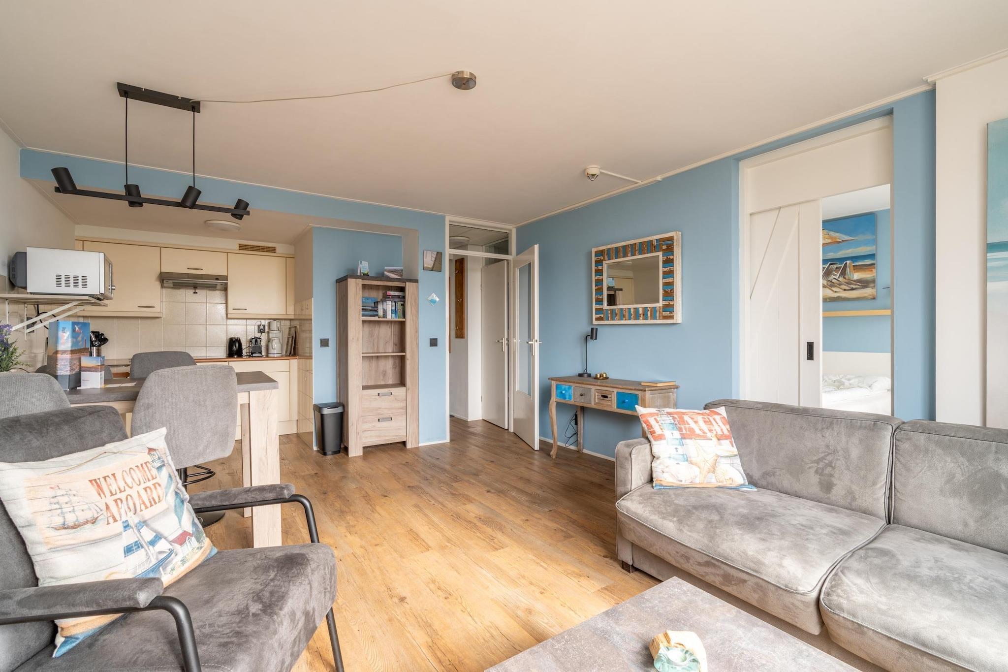 A unique location on the dunes of De Koog! Juliana is situated on the highest dune on Texel, in a breathtakingly beautiful spot in the heart of the Dunes of Texel National Park. From the island's highest dune, you have views of the fields, the North Sea, and the seaside resort of De Koog. Comfortable and charming ground-floor apartment for 2 people with an island view, featuring a spacious, furnished terrace. The living room includes a sitting area with a TV and a dining area with a dining table for 4. The spacious open-plan kitchen is equipped with a dishwasher, fridge-freezer, microwave, and various coffee makers. The bedroom has two comfortable single box-spring beds and a TV. From the bedroom, you have access to the neat bathroom, which features a wonderful walk-in shower with a rain shower head and a sink. The toilet is located separately. The spacious terrace offers the opportunity to admire a beautiful sunrise. The terrace is furnished with garden furniture, including a lounge set. The complex has a laundry room available for a fee. Children's furniture is available upon request and for a fee. Free Wi-Fi. Smoking is not permitted. One parking space is available on-site for each accommodation.