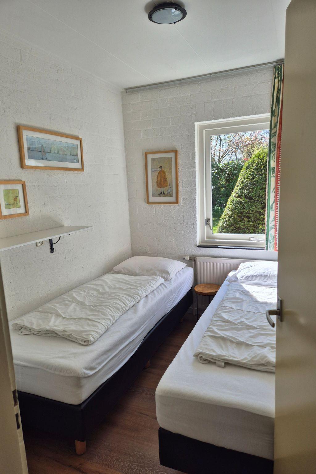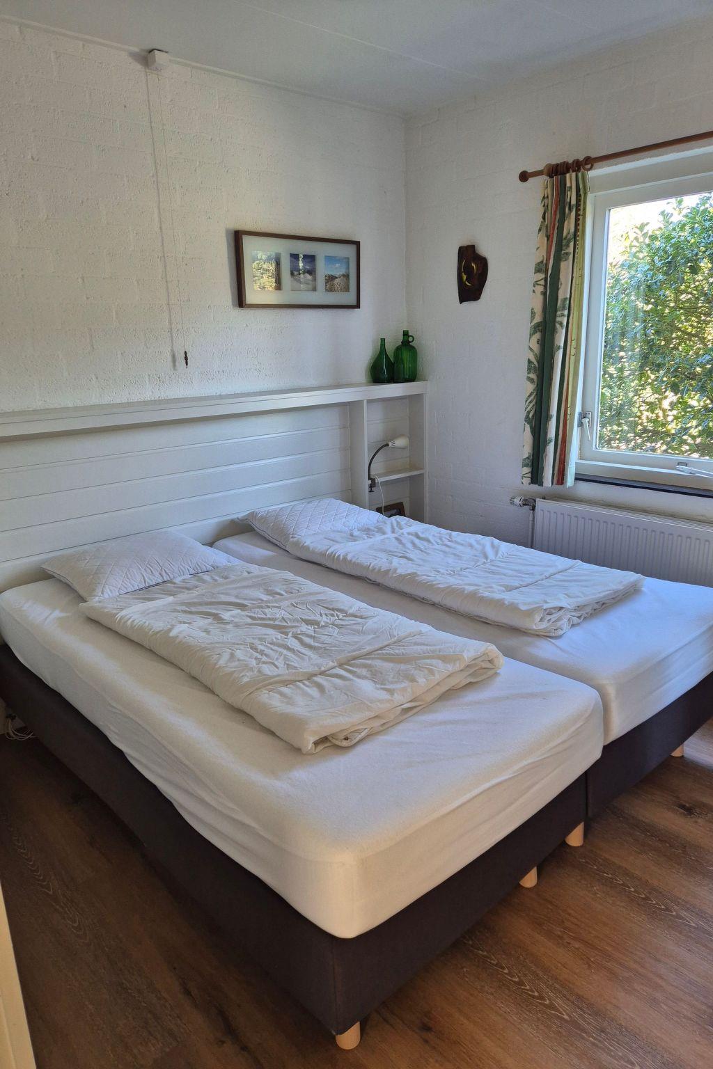 The holiday house can accommodate five people. Dogs are also welcome guests. The five beds are spread across three bedrooms: one with a double bed (180 x 200cm), one with two single beds (80 x 200cm) and one with a single bed (90 x 200cm). Pillows and single blankets are provided. It is also possible to set up your own travel bed (for a small child). Apart from a bathroom with a shower there is also a separate WC. The kitchen is fully-equipped, even with a dishwasher. You can make yourselves comfortable in front of the fireplace stove in the adjoining living and dining room. All the rooms have heating.