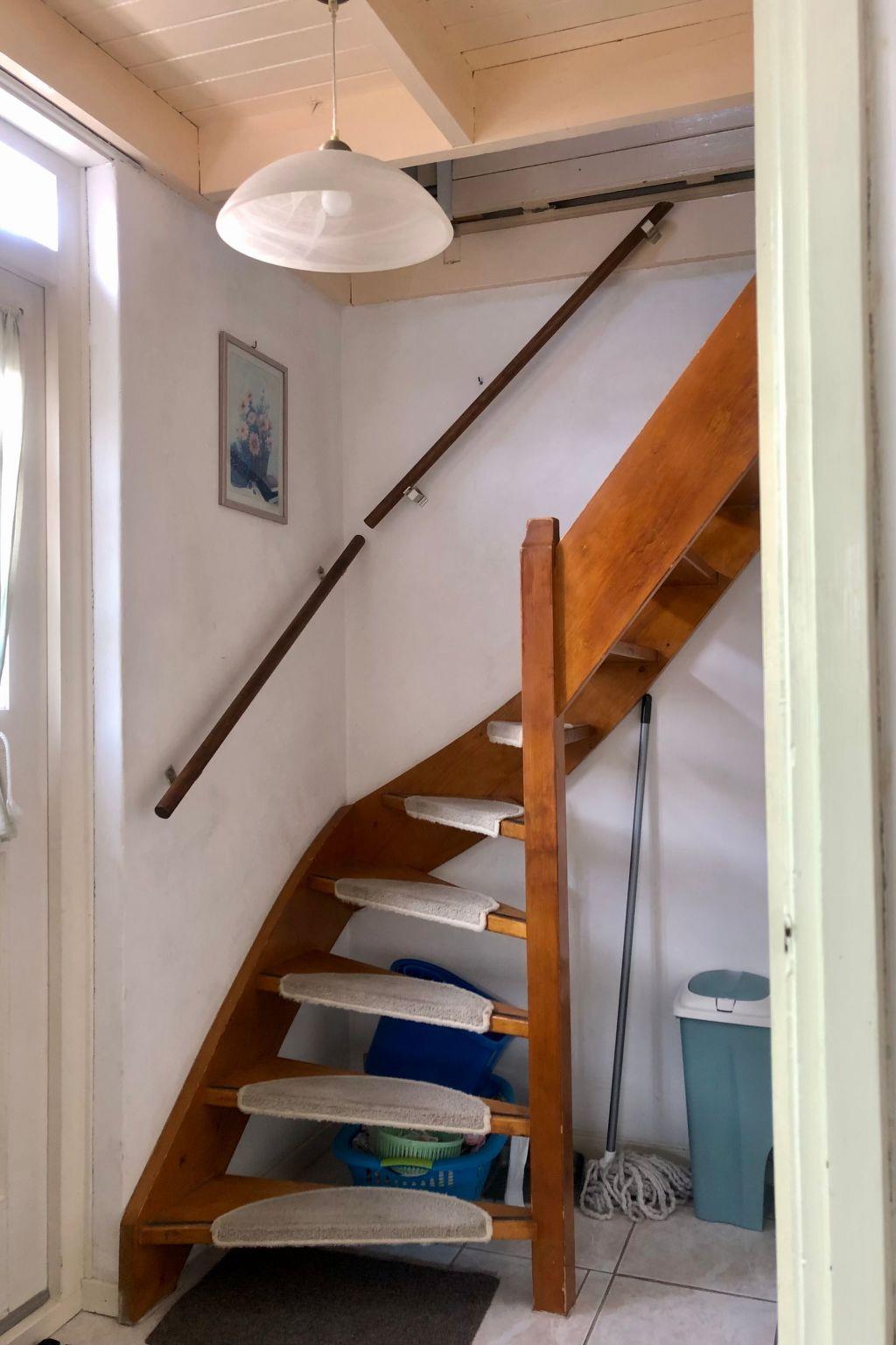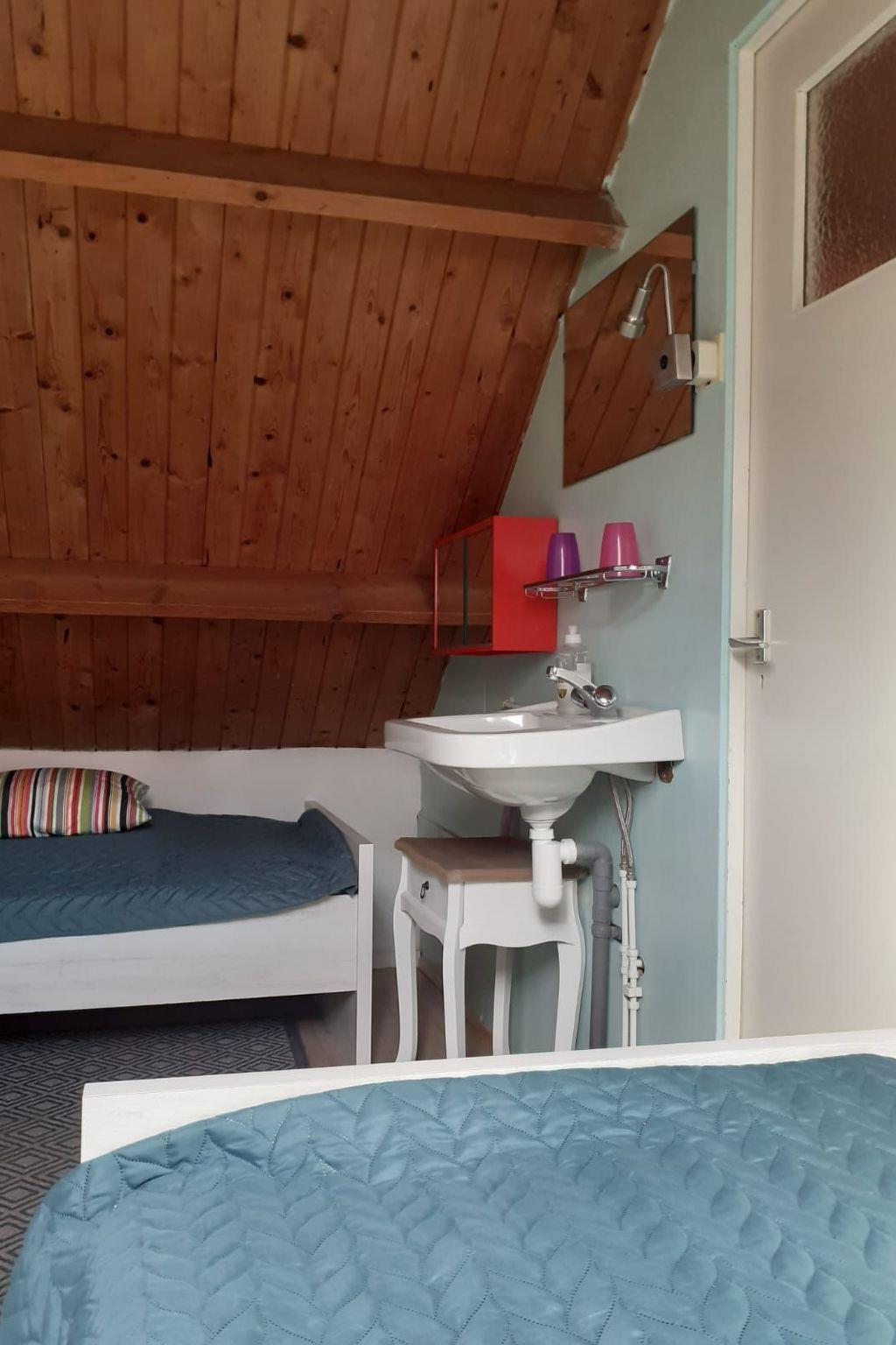Inside the holiday home, you will find a practically furnished space that meets all your needs. The ground floor features a cosy living room with television, dining table for four, and an open kitchen with a gas cooker, fridge with freezer compartment, coffee maker, a Senseo, kettle, and microwave. The presence of a washing machine also makes it very practical for longer stays. The upper floor houses two comfortable bedrooms, each with its own sink, one offering two single beds and the other a double bed.