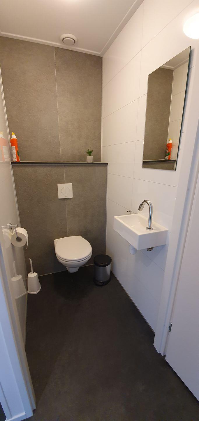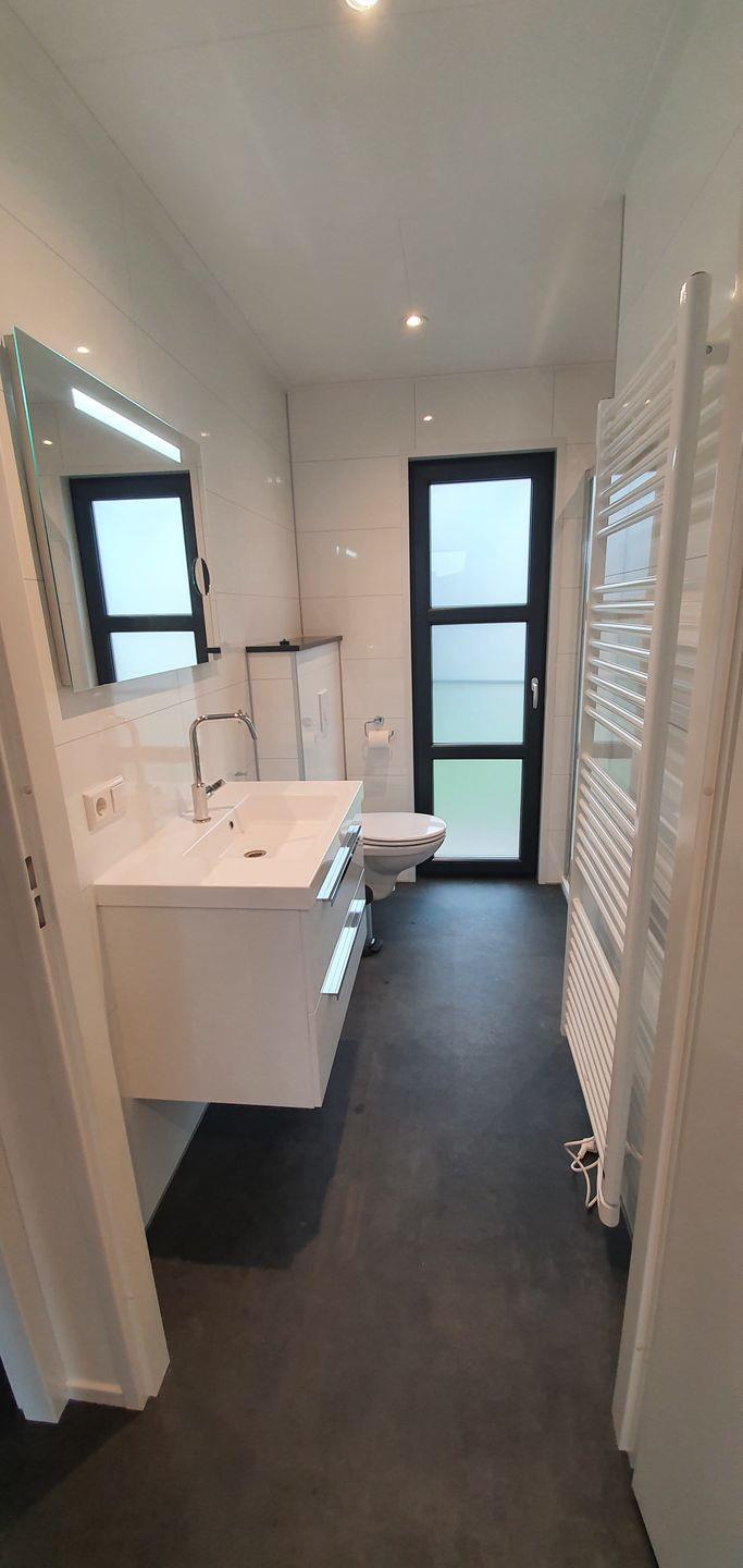 Das Badezimmer ist modern gestaltet und verfügt über eine bodengleiche Regendusche, WC, Waschbecken, Spiegel und Fenster. Zusätzlich steht ein zweites WC zur Verfügung. Fliegengitter tragen zum angenehmen Raumklima bei, ebenso wie eine effiziente Wärmepumpe-Heizung und eine Klimaanlage.